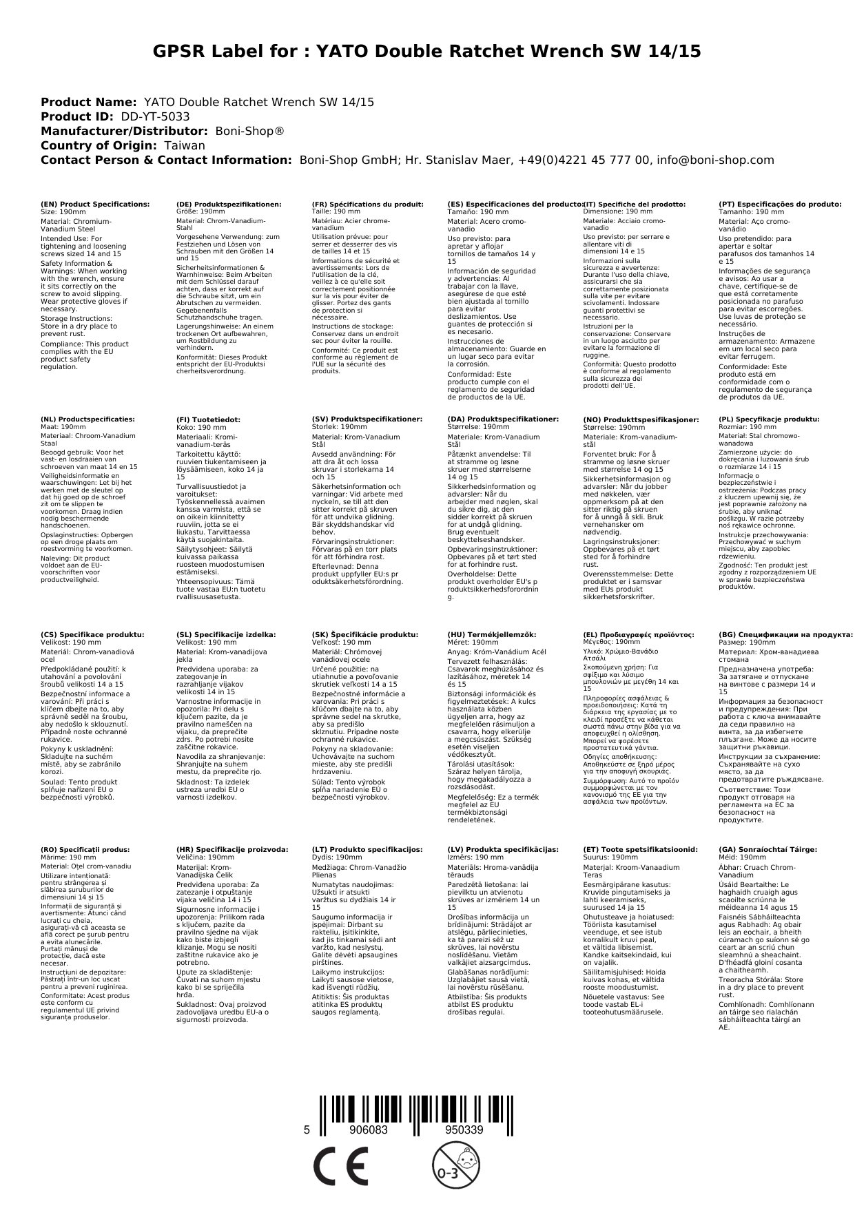 Is é an Eochair Ratchet Fáinne Dúbailte seo an réiteach idéalach má theastaíonn uirlis ildánach agus láidir uait. Le méideanna eochair 14 mm agus 15 mm, tá tú ullmhaithe go maith le haghaidh go leor feidhmchlár. Cinntíonn an mheicníocht ratchet láidir agus an limistéar greim neamh-duillín oibriú compordach agus sábháilte. Faigh taithí ar an cruinneas agus an marthanacht a shainíonn an uirlis seo. Sonraíochtaí Tábhachtacha, Sonraíochtaí Teicniúla, Gnéithe Táirge, Buntáistí, Feidhm, CCanna, Cén Fáth Siopa Boni