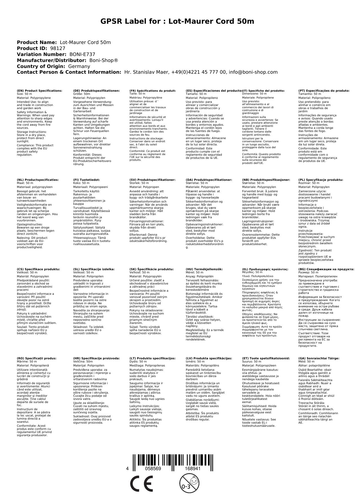 Tairgeann ár sreang saoir tacaíocht iontaofa duit le do thionscadail tógála. Le fad 50 méadar agus déanta as polapróipiléin láidir, seasann sé fiú coinníollacha éilitheacha. A bhuíochas leis an íseal-sínteacht, baineann tú torthaí cruinne amach i gcónaí. Cén fáth go bhfuil sé seo tábhachtach duit: Is féidir leat brath ar shreang fada buan agus iontaofa a fhágann go bhfuil do chuid oibre níos éasca.