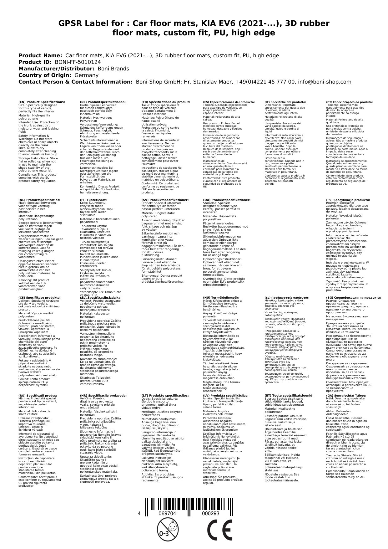 Má roghnaíonn tú ár mataí urláir rubair 3D do do KIA EV6, bainfidh tú leas as ár dtiomantas do cháilíocht agus do shástacht chustaiméirí. Seasann Boni-Shop ar son: