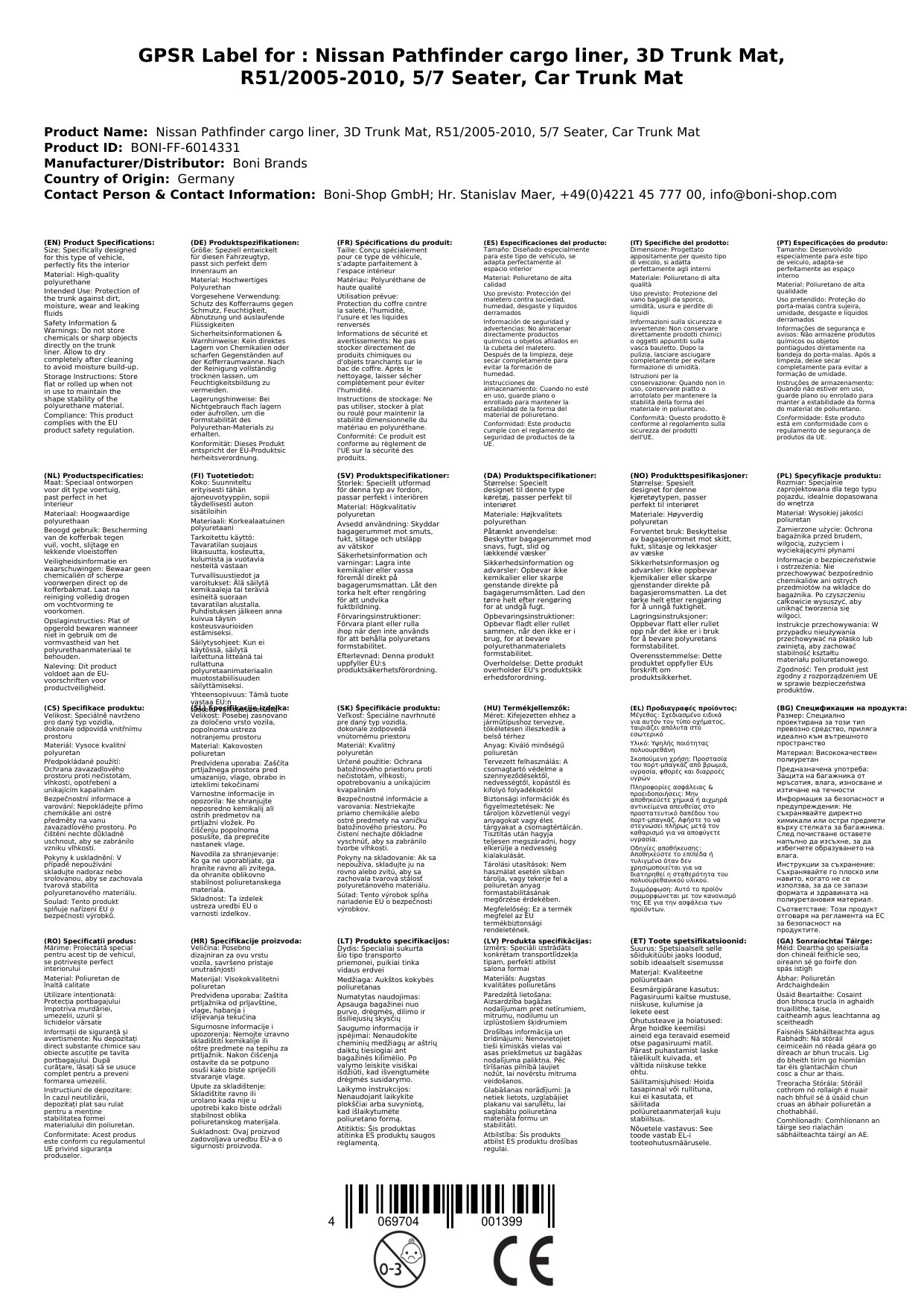 - Oiriúnach Beacht le Scanadh 3D: A bhuíochas lenár dteicneolaíocht nuálach scanadh 3D, tá an mata stoc seo saincheaptha go beacht do chomhrianta do Nissan Pathfinder III. Faigheann tú mata stoc a oireann go foirfe a luíonn go foirfe i do stoc, gan aon duillín ná bearnaí.