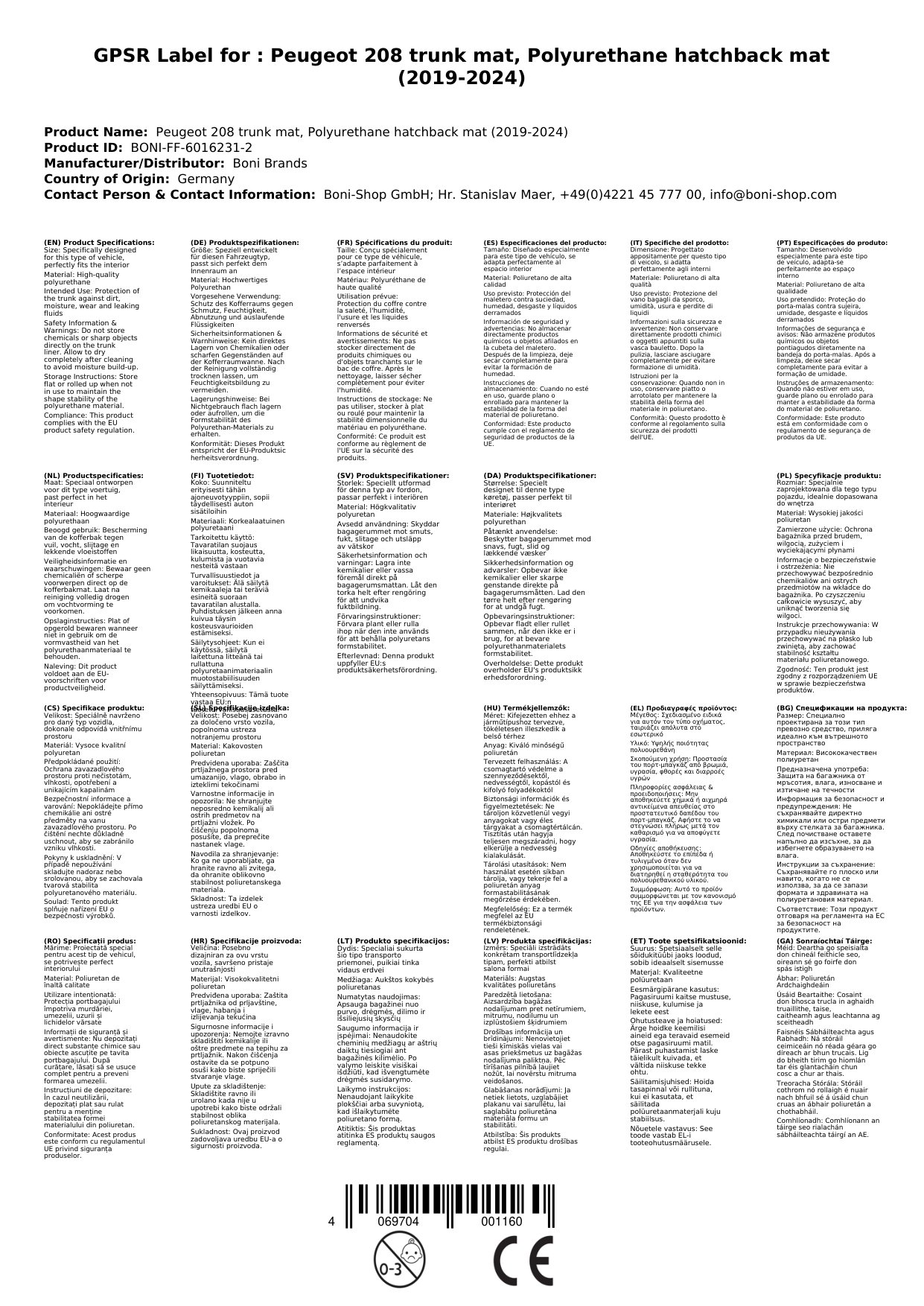 Cuir ceist chun níos mó a fhoghlaim faoin táirgeMata trunk Peugeot 208, Cosantóir trunk Peugeot 208, 3D, Polyurethan, PEUGEOT 208 II (2019–2024) Schrägheck