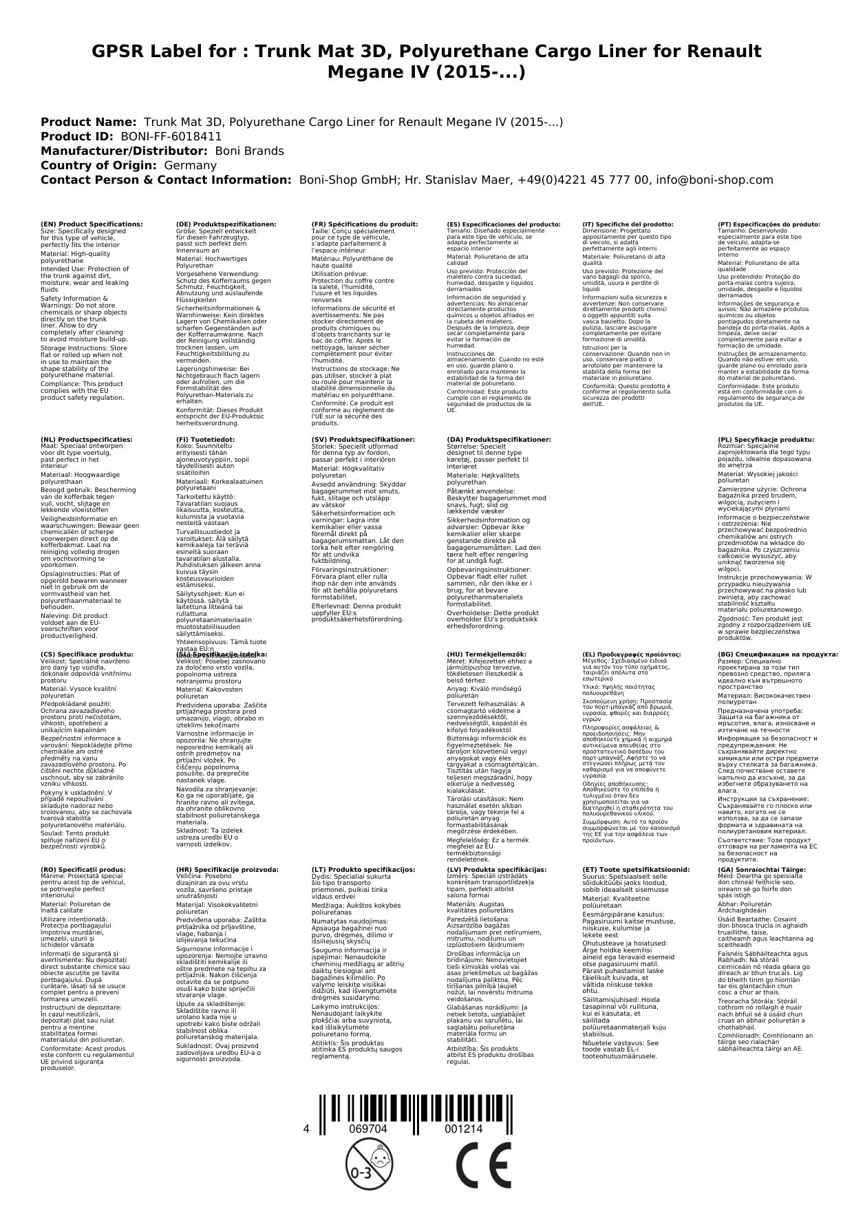 Is é an mata tosaithe 3D seo an réiteach idéalach d'aon úinéir Renault Megane IV (2015-...) Hatchback ar mian leo a dtosaithe a choinneáil glan agus cosanta. Déanta as polúireatán láidir, ní hamháin go dtugann sé oiriúnacht bheacht a bhuíochas le samhaltú cruinn scanadh 3D, ach freisin friotaíocht ard i gcoinne caitheamh agus ceimiceán. Cinntíonn an dromchla frith-duillín go bhfanann d'ualach go sábháilte i bhfeidhm. Ciallaíonn sé seo duit go bhfuil taobh istigh d'fheithicil cosanta go héifeachtach ó shalachar agus leachtanna laethúla, rud a shimplíonn an cúram go mór agus a mhéadaíonn luach athdhíola do charr.