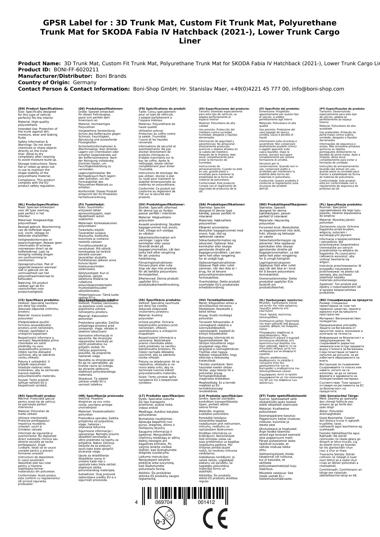 Cosain stoc do SKODA Fabia IV Hatchback (2021+) leis an mata trunk 3D ardchaighdeáin seo. Deartha go speisialta don stoc íochtarach, cuireann sé cosaint ar fheabhas ar fáil i gcoinne salachar, taise agus caitheamh. A bhuíochas le teicneolaíocht scanadh 3D nua-aimseartha, tá an líneáil trunk seo gearrtha go beacht ar do fheithicil. Bain sult as marthanacht agus feidhmiúlacht an mata trunk seo déanta as polúireatán láidir.