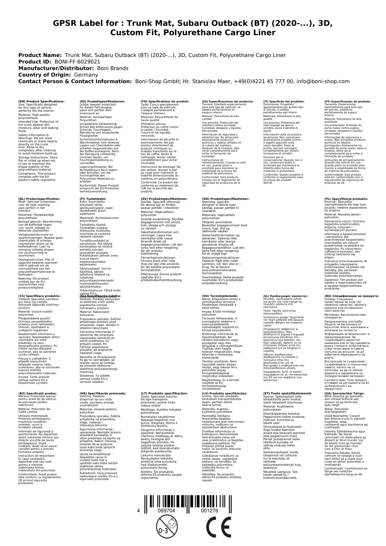 Nuair a cheannaíonn tú do mata buatais Subaru Outback ó Boni-Shop, roghnaíonn tú cáilíocht agus seirbhís. Cuirimid luach mór ar shástacht ár gcustaiméirí agus cuirimid táirgí ar fáil duit a chuireann ina luí ort lena réiteach nuálaíoch agus cosaint taobh istigh ardchaighdeáin.