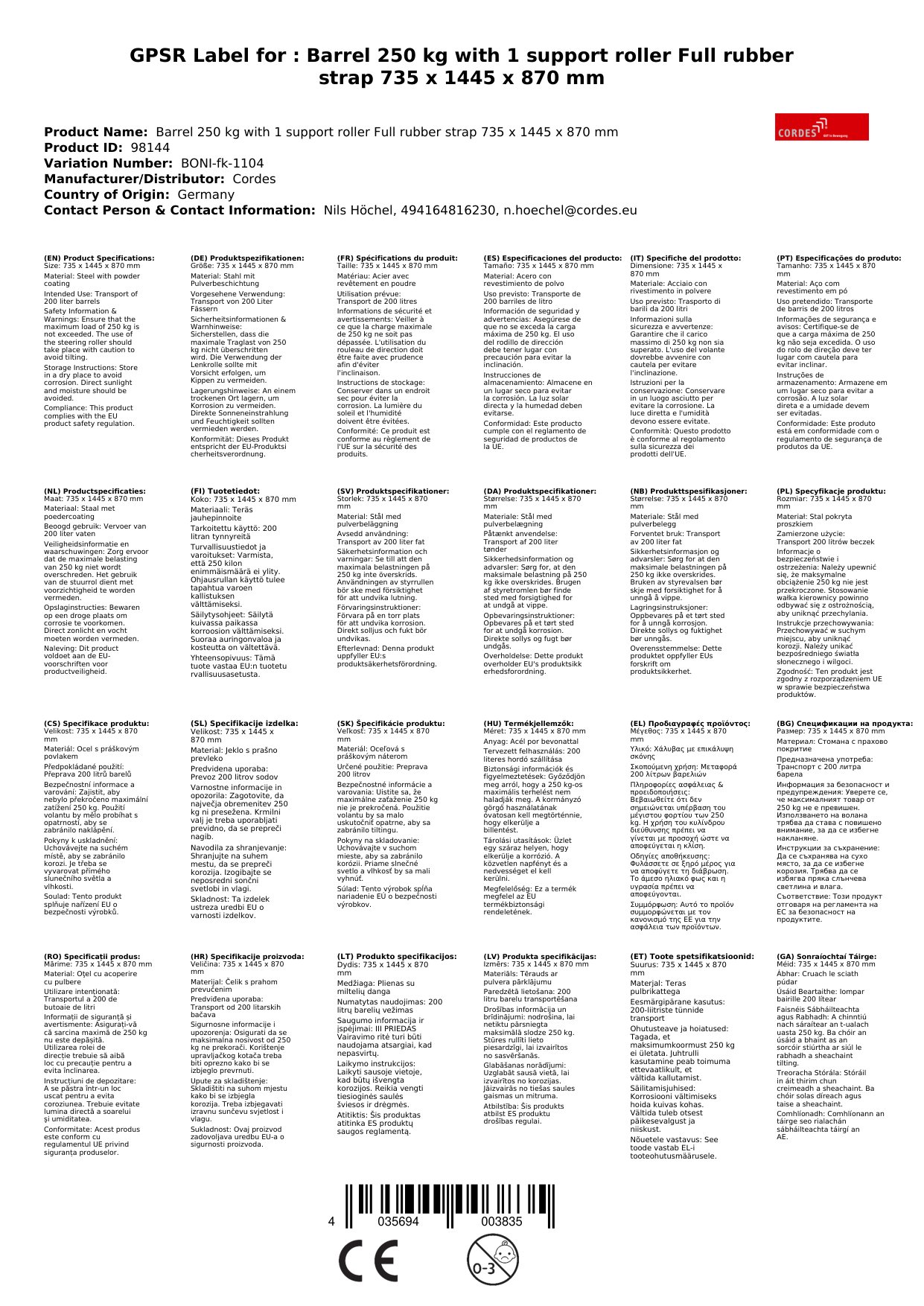 Tairgeann ár gCarráiste Bairille cosaint iontaofa agus iompar do do chuid bairillí. Le cumas ualaigh 250 kg agus boinn láidre rubair soladach, seasann sé le coinníollacha foircneacha. Cén fáth go bhfuil sé seo tábhachtach duit: Is féidir leat brath ar charráiste buan a iompraíonn do chuid bairillí go sábháilte thar na blianta.