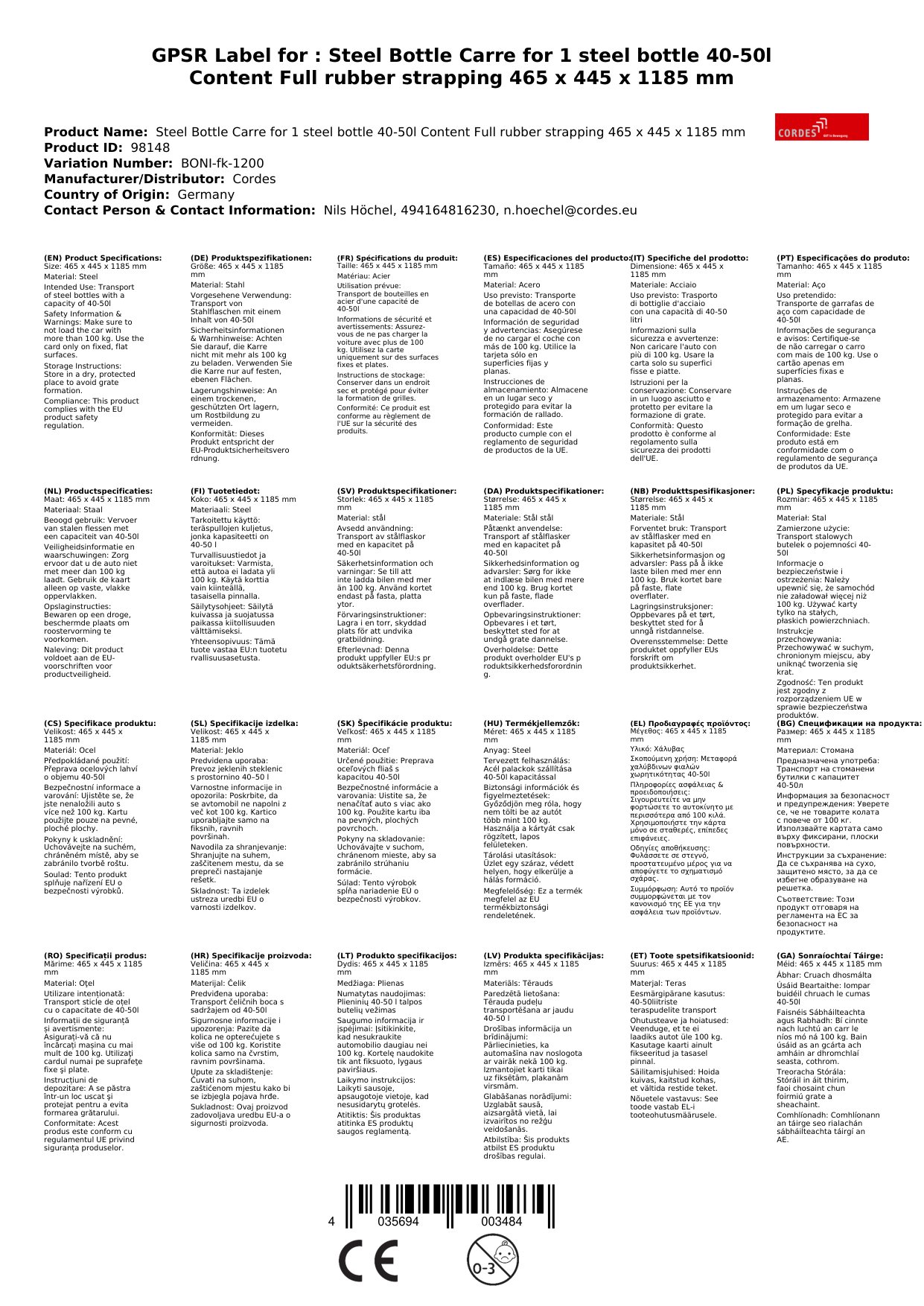Trolaithe Buidéal Gáis Cruach, 40-50L, Iompar Buidéal Gáis Sábháilte