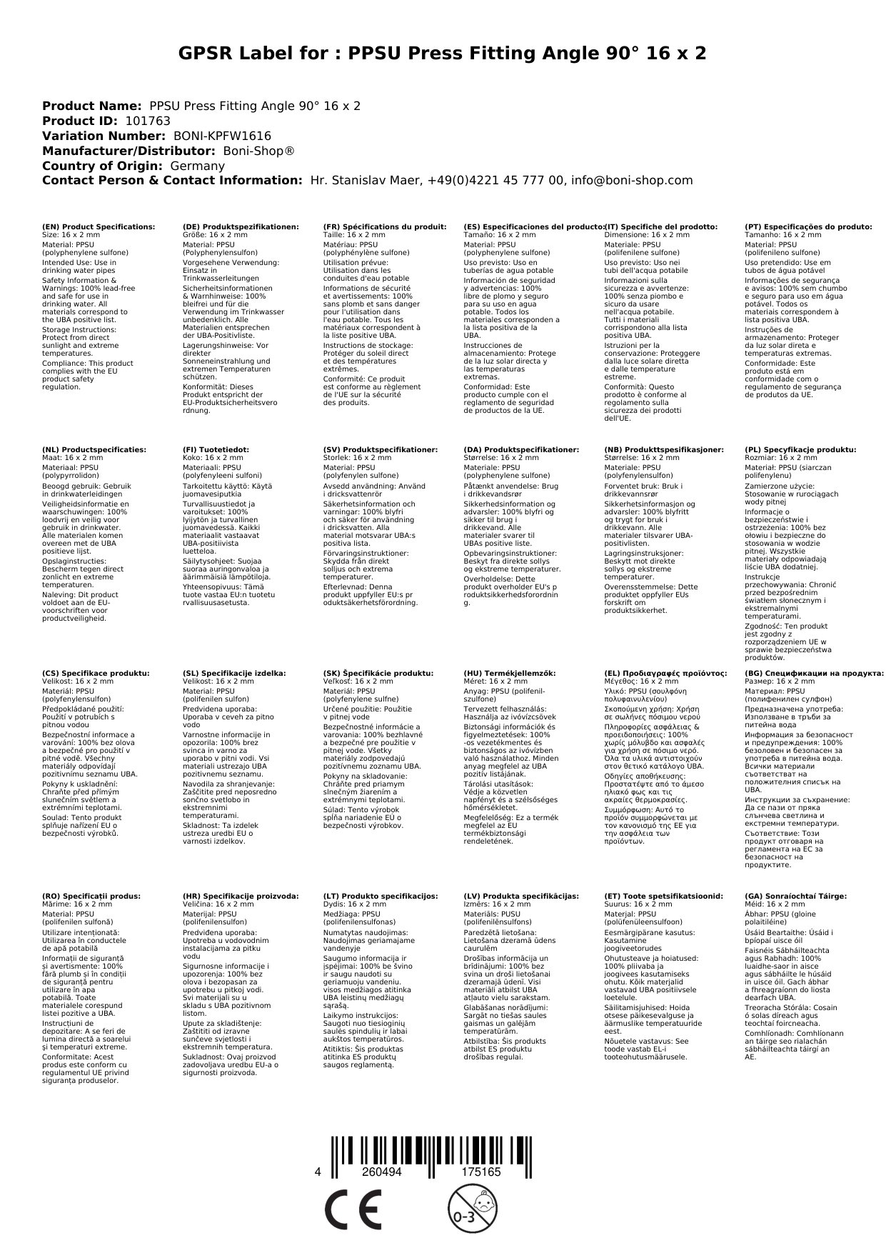 Feisteas Preasa PPSU Uillinn 90° 16 x 2