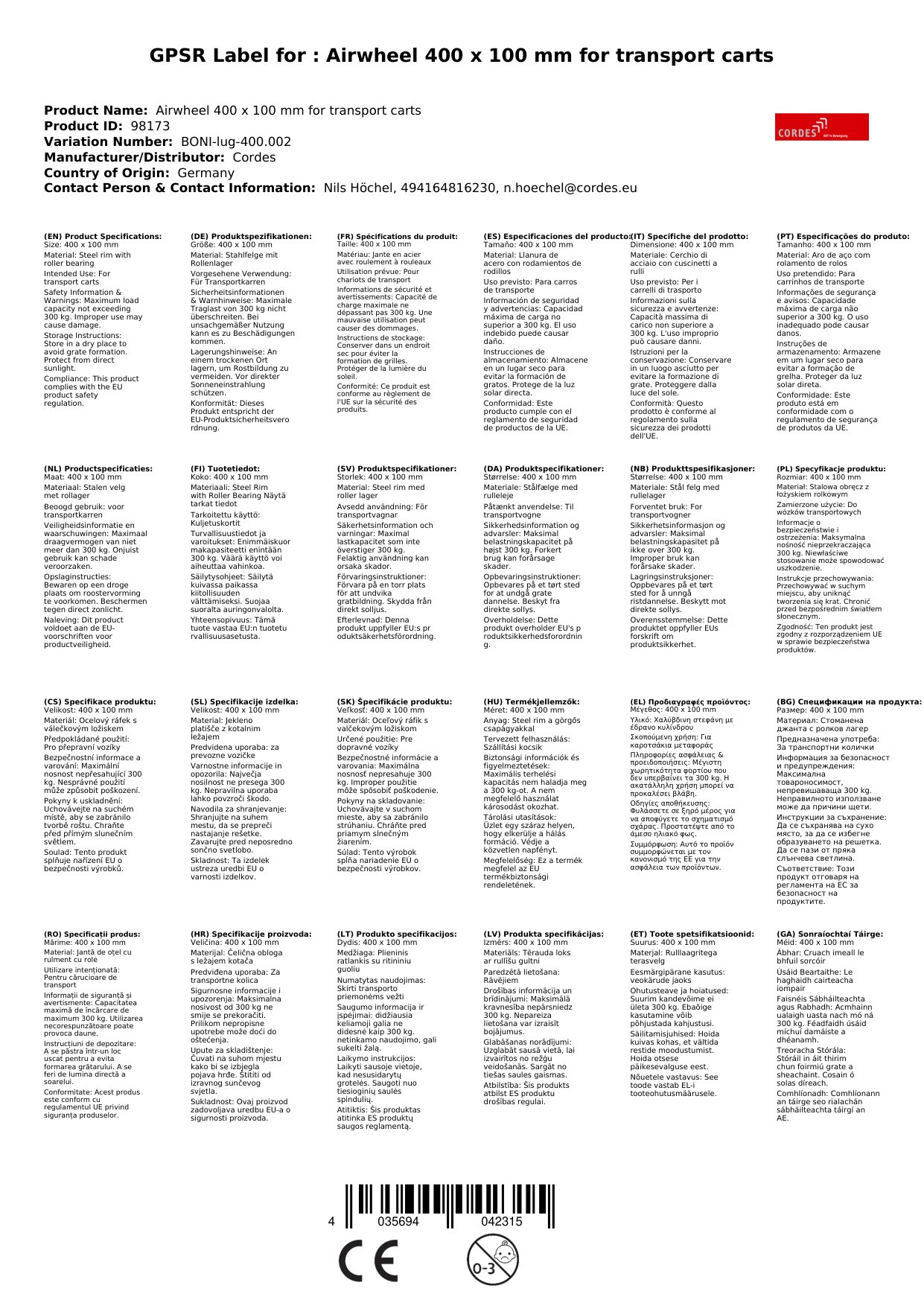 | Brand: | Cordes |