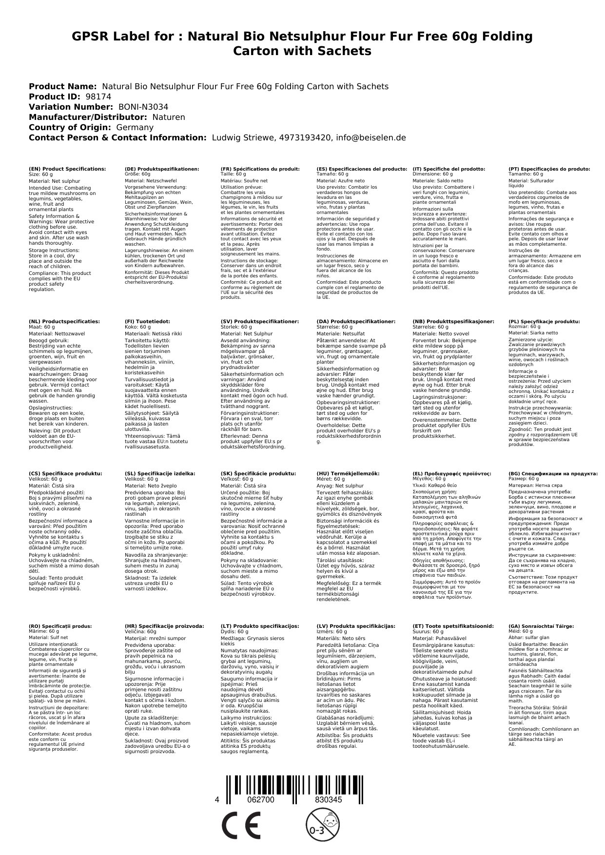 Cuireann ár Sulfar Glan Orgánach cosaint iontaofa ar fáil do do chuid plandaí. Leis an bhfoirmle nádúrtha atá aige, comhraiceann sé go héifeachtach mildew púdraithe agus ionfhabhtuithe fungais. Cuireann na saicíní codanna praiticiúla ar chumas feidhmiú simplí agus beacht. Cén fáth go bhfuil sé seo tábhachtach duit: is féidir leat brath ar chosaint nádúrtha agus éifeachtach plandaí a choinníonn do chuid plandaí sláintiúil.