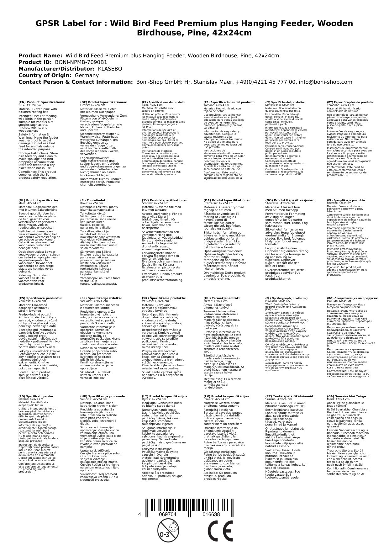 Já, glasiert furuhúð og sterkt Bitúmen-þak vernda áreiðanlega gegn regni, snjó og frosti, þannig að það heldur stöðugum jafnvel í köldum mánuðum og heldur villifuglafodur þínu þurru – samanborið við óvernduð líkön heldur það mun lengur.