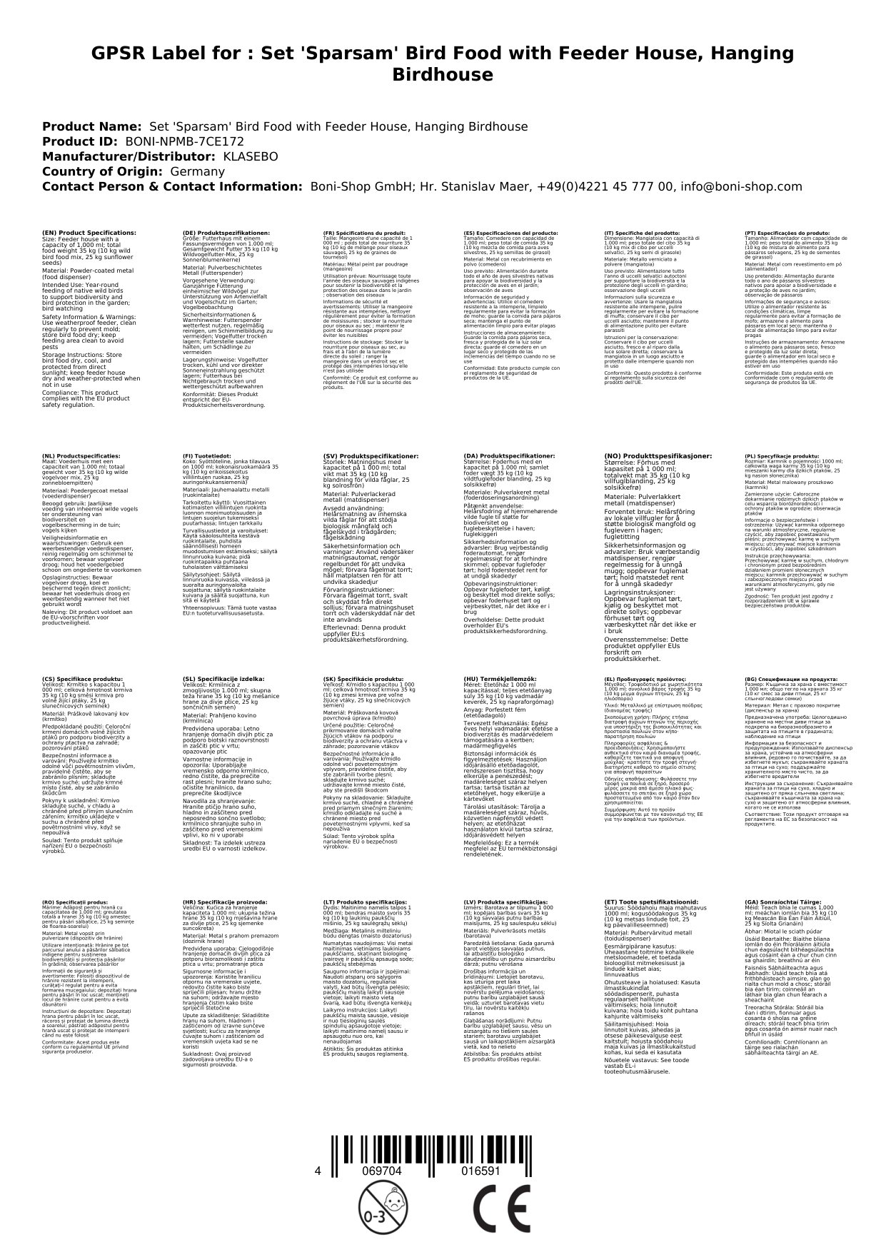 Cuir ceist chun níos mó a fhoghlaim faoin táirgeSraith Bia Éanlaithréis le Stáisiún Bia - Meascán Bia Éanlaithréis Fiáin 10 kg, Síolta Lóin Dhubh 25 kg agus Dáileoir Bia Crochta 1000 ml