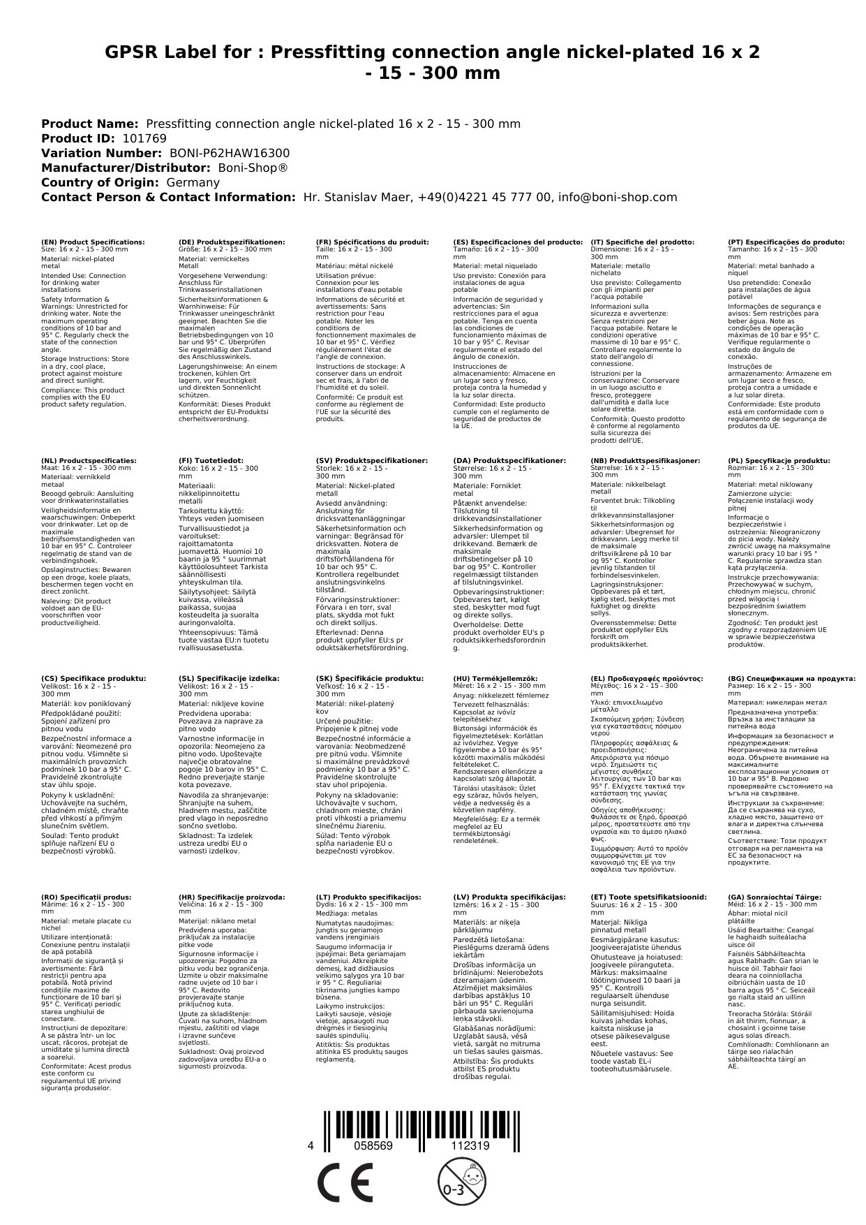 Ríomhphost na Duine Freagrach don AE: info@boni-shop.com