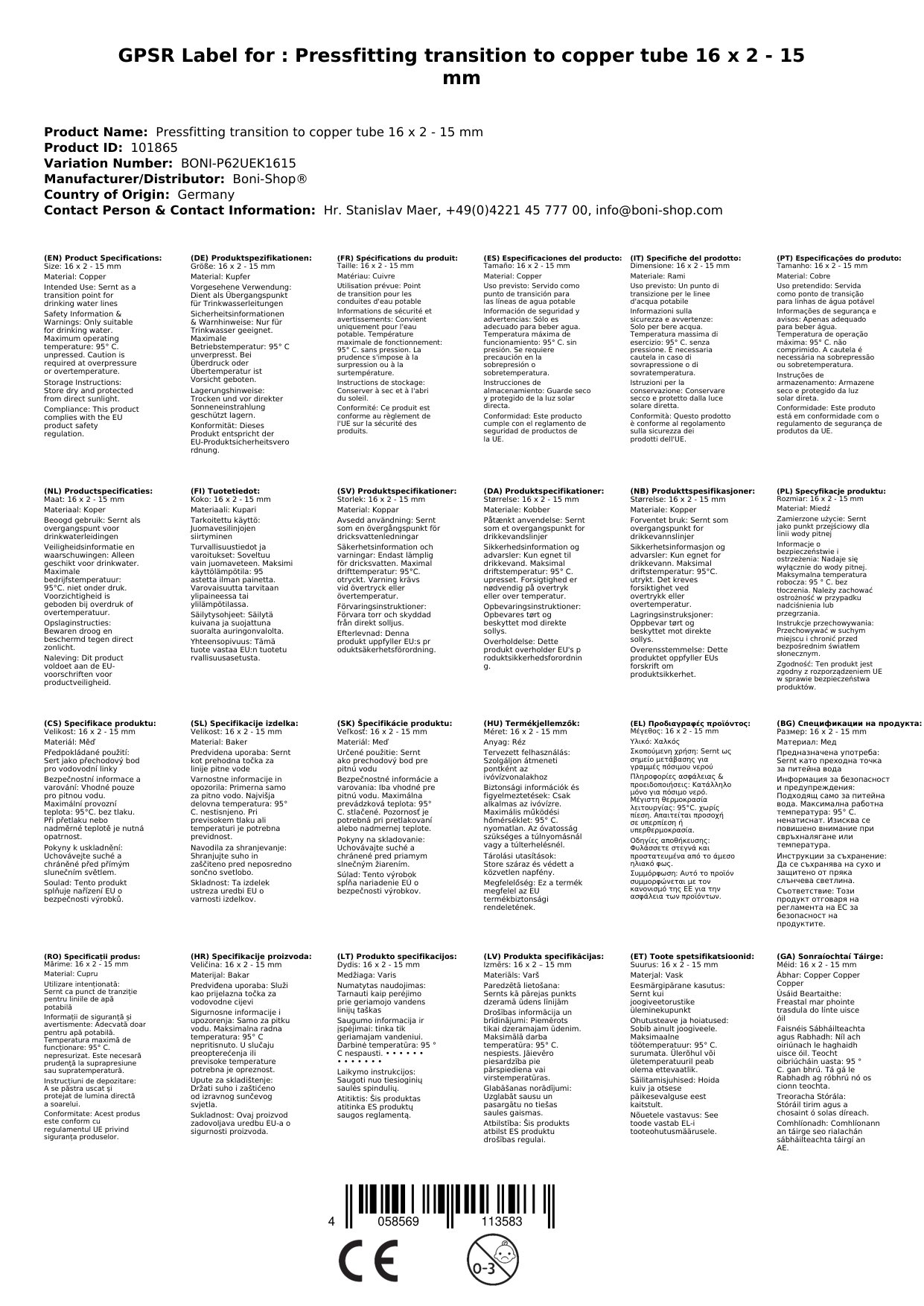 | Prás Speisialta (CU Zn 40 Pb2) | 16 x 2 - 15 mm | DVGW | Píopa Copair, Píopa Ilchodach Ilchisealach |