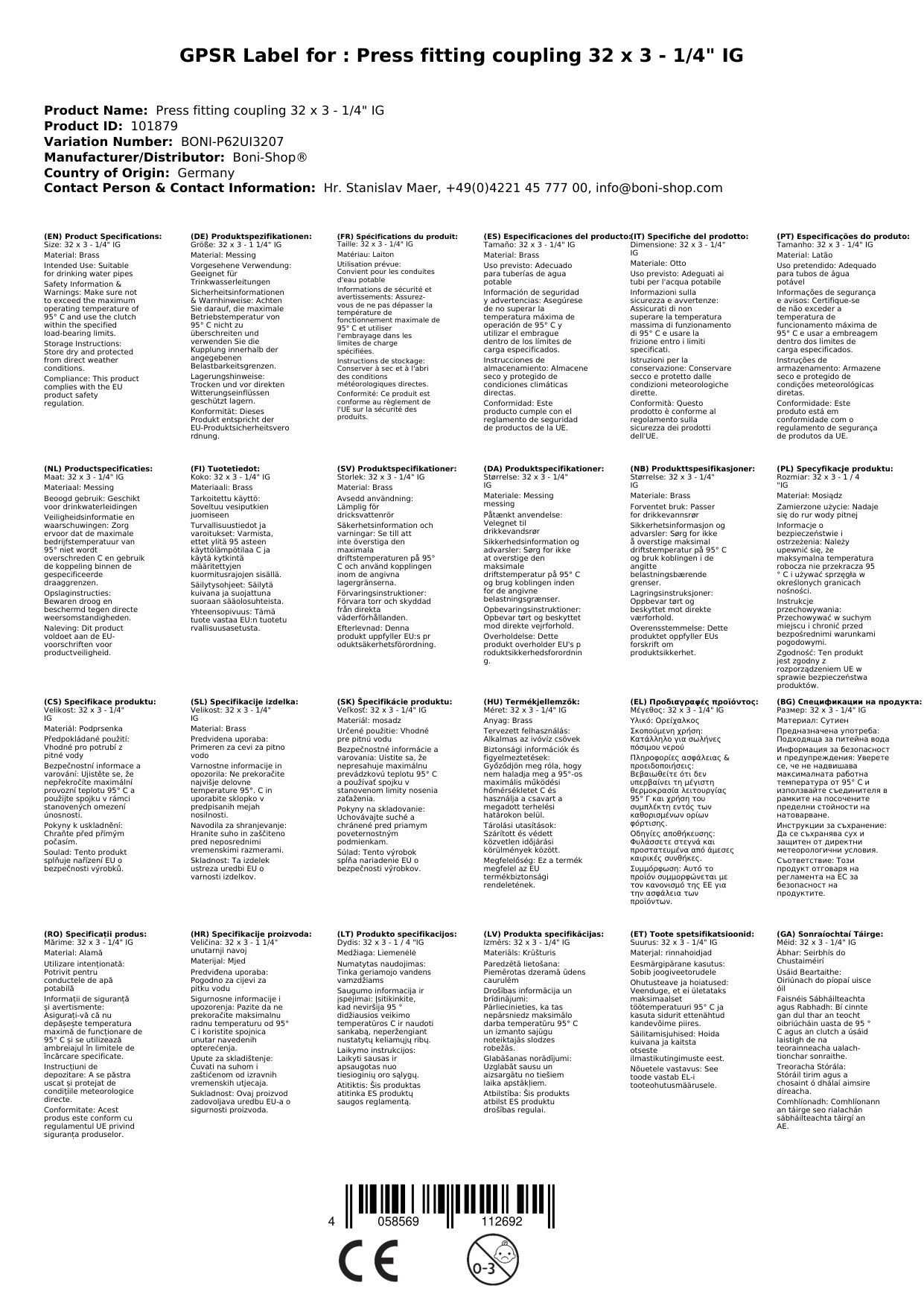 Tabhair faoi deara go bhfuil úsáid píobáin ilchiseal eile seachas na cinn a dhíolann Boni-Shop ar do phriacal féin.