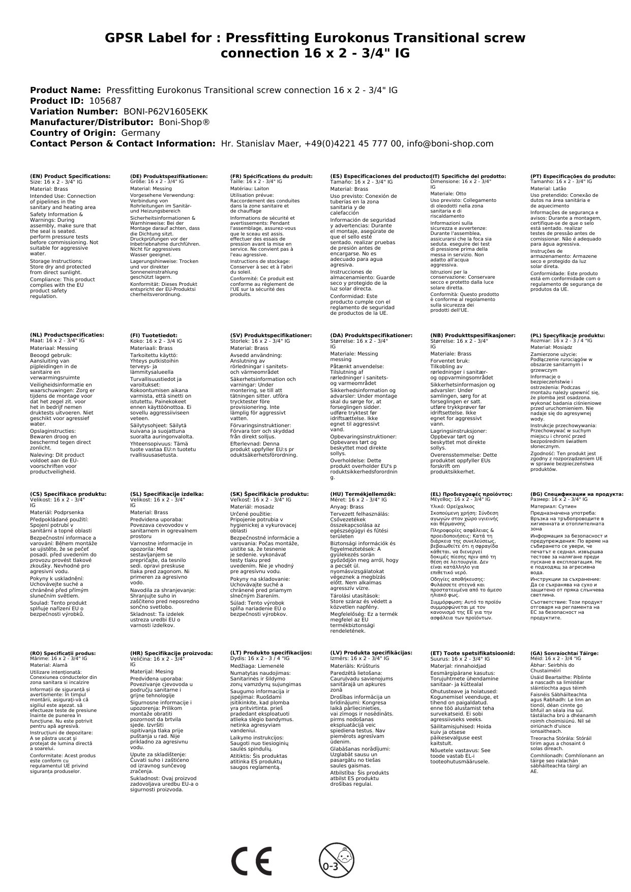 Feistiú brú Eurokonus nasc aistrithe 16 x 2 - 3/4" IG