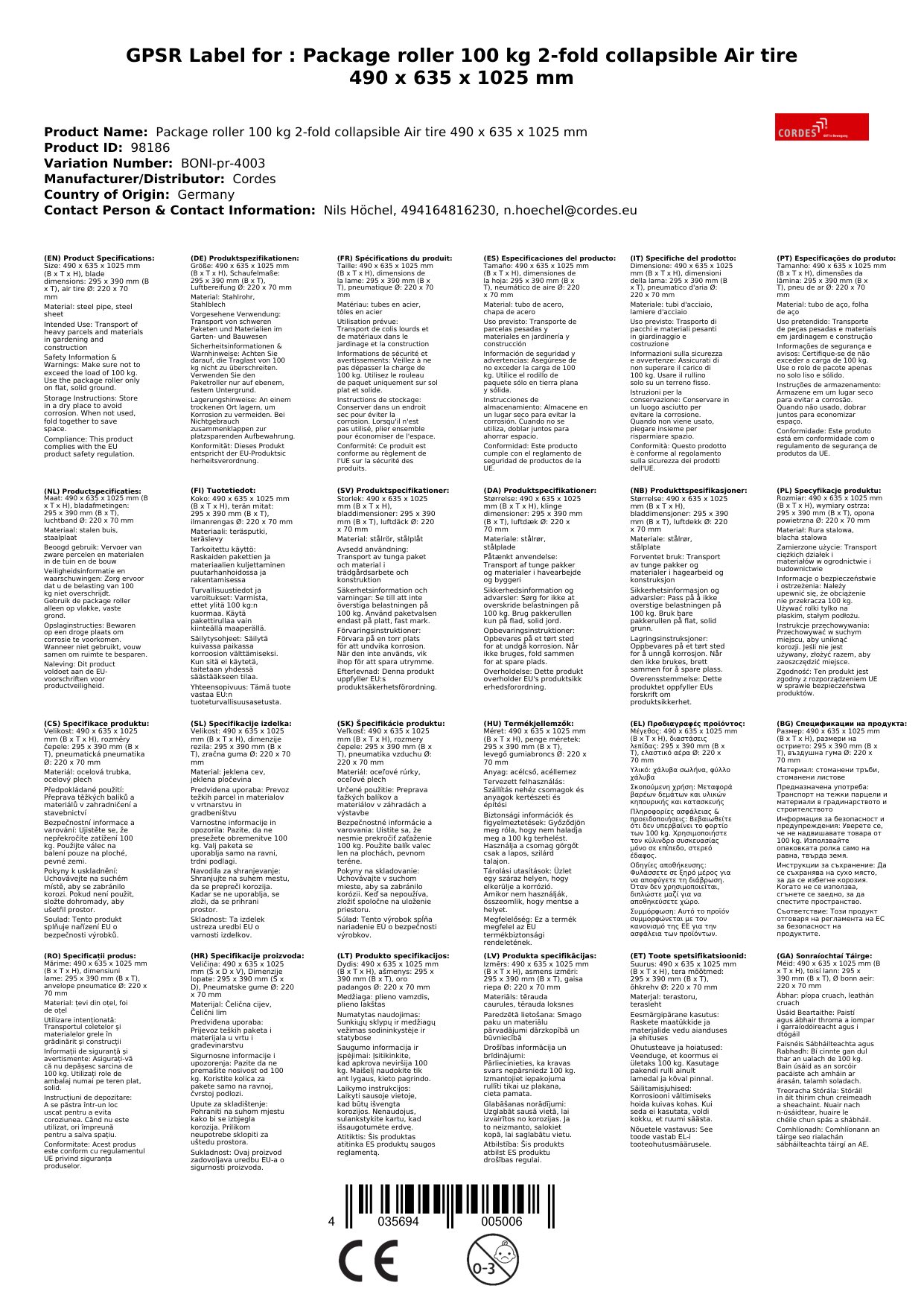 | Brand: | Cordes |