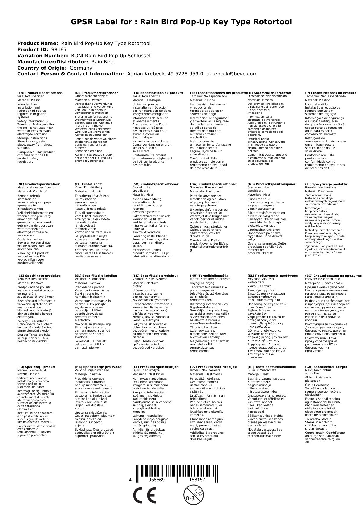 | SKU | BONI-Rain Bird Pop-Up Schlüssel |