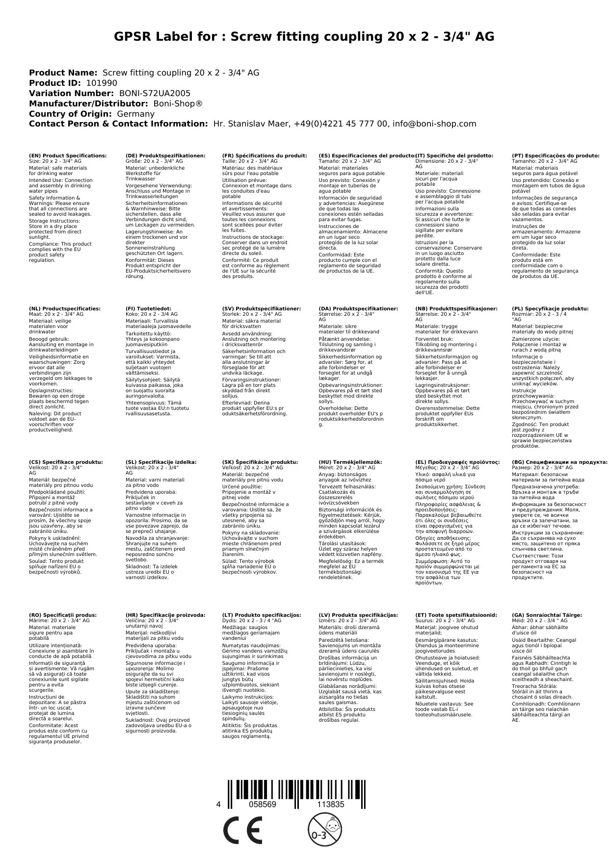 Tá an feisteas scriú seo deartha le haghaidh suiteáil éasca agus tapa gan uirlisí speisialta. Tá sé oiriúnach le haghaidh píopaí 20mm agus tá snáithe fireann 3/4" AG aige. Tá sé déanta as ábhair ardchaighdeáin atá sábháilte d'uisce óil agus resistant do theochtaí arda. Cinntíonn an dearadh seo nasc iontaofa agus fadtéarmach do do chórais píopaí.