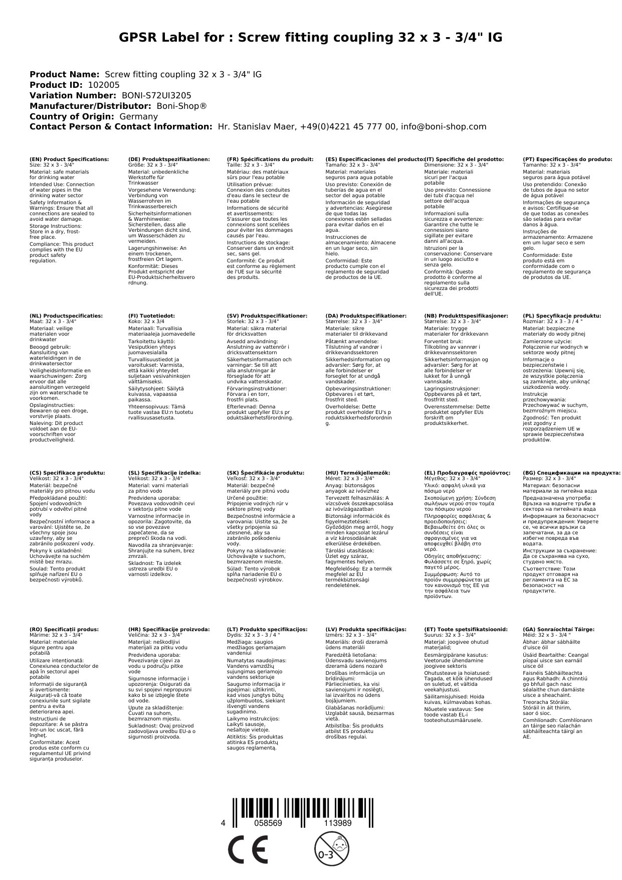 Tabhair faoi deara go ndéantar úsáid píopaí ilchodacha eile, seachas na píopaí ilchodacha a dhíoltar ag Boni-Shop, ar do phriacal féin.