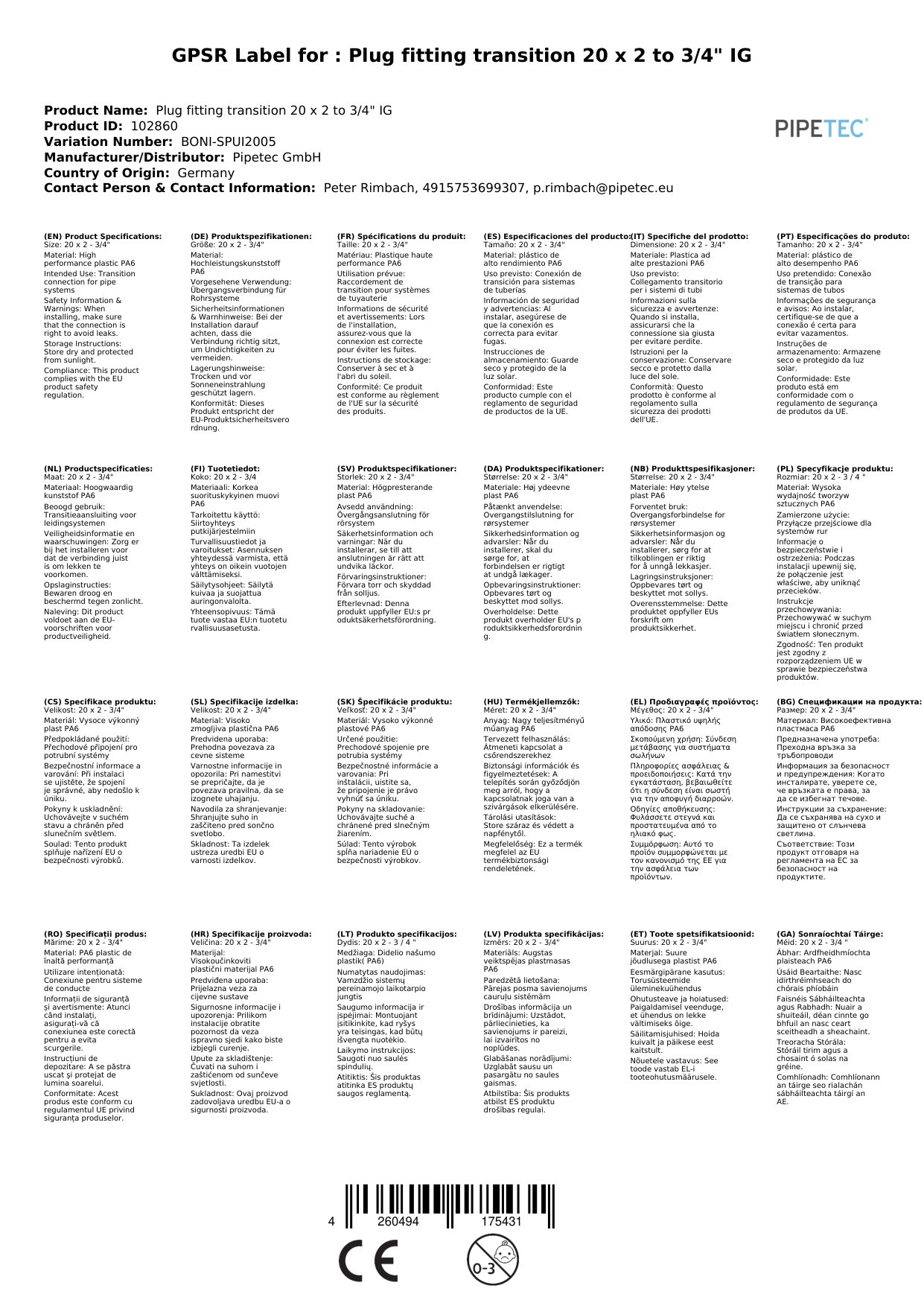 Cuireann ár bhfeisteas brú nasc iontaofa ar fáil do do shuiteálacha píopaí. Leis na toisí 20 x 2 go 3/4" IG agus an suiteáil brú simplí, sábhálann tú am agus iarracht. A bhuíochas leis na hábhair ardchaighdeáin, tá an feisteas buan agus resistant. Cén fáth go bhfuil sé seo tábhachtach duitse: Faigheann tú réiteach sábháilte agus buan do do shuiteálacha, gan aon uirlisí speisialta ag teastáil.