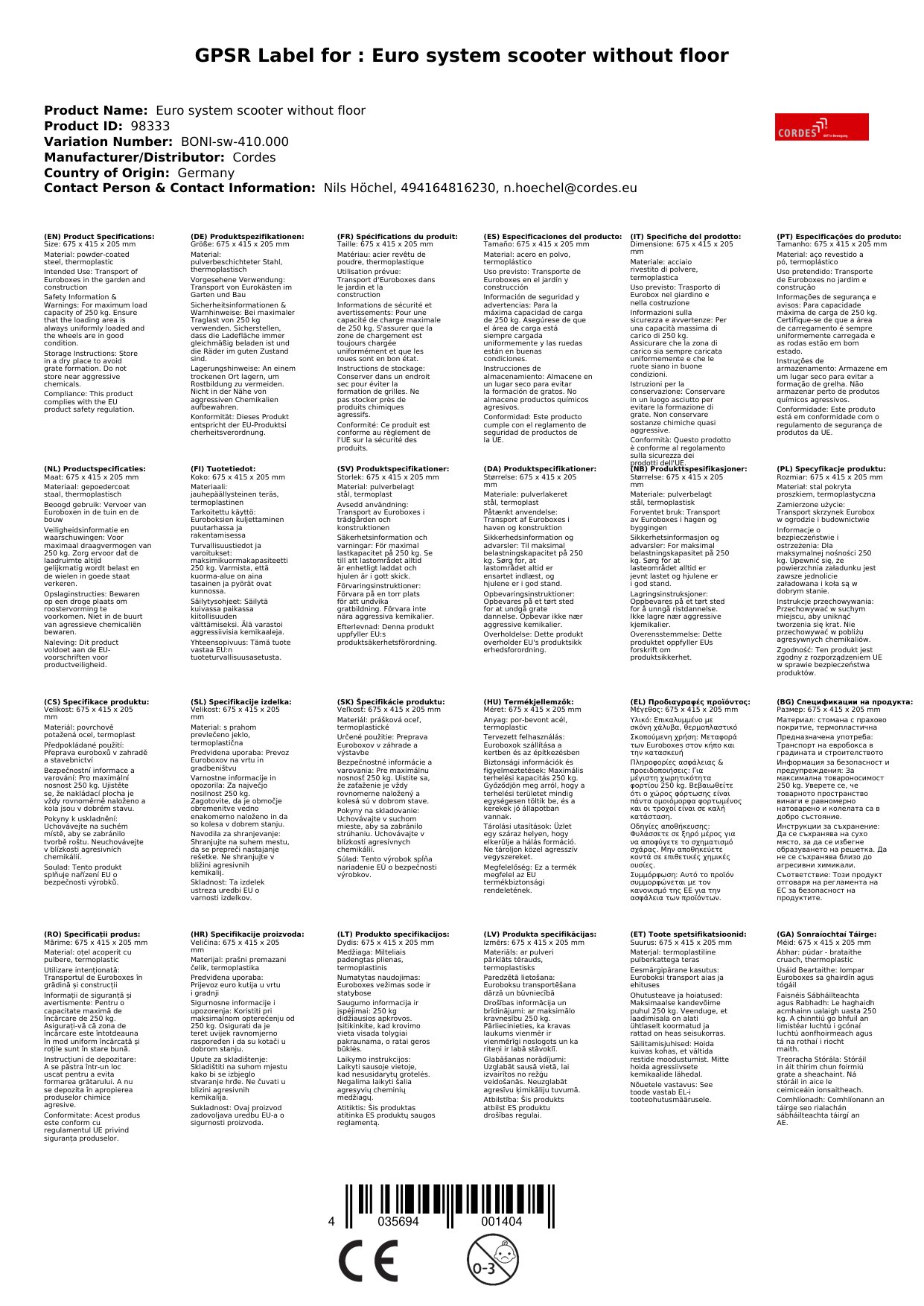 Tá an rollaí deartha go speisialta le haghaidh Eurokästen a bhfuil na toisí 600 x 400 mm acu. Seiceáil toisí do bhoscaí le do thoil sula gceannaíonn tú.