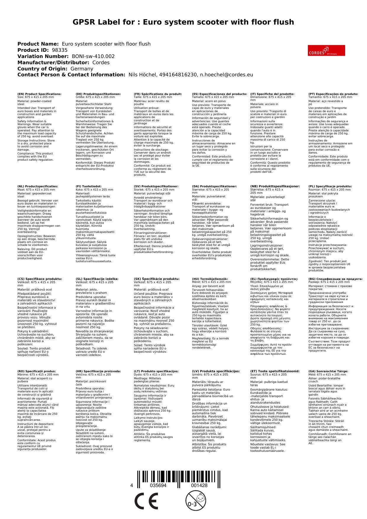 An bhfuil réiteach áisiúil á lorg agat chun do bhoscaí Euro a iompar go héasca agus go sábháilte? Is é ár rollaí Euro an rogha iontach do cheardlann, stóras nó le haghaidh iompair. Tá sé láidir, buan agus deartha go speisialta do bhoscaí Euro 600x400 mm. Leis an gcarr rolla seo, sábhálfaidh tú am agus fuinneamh! Tabhair faoi deara na gnéithe suntasacha, na buntáistí, na sonraíochtaí teicniúla agus na hathbhreithnithe dearfacha ó chustaiméirí atá sásta.