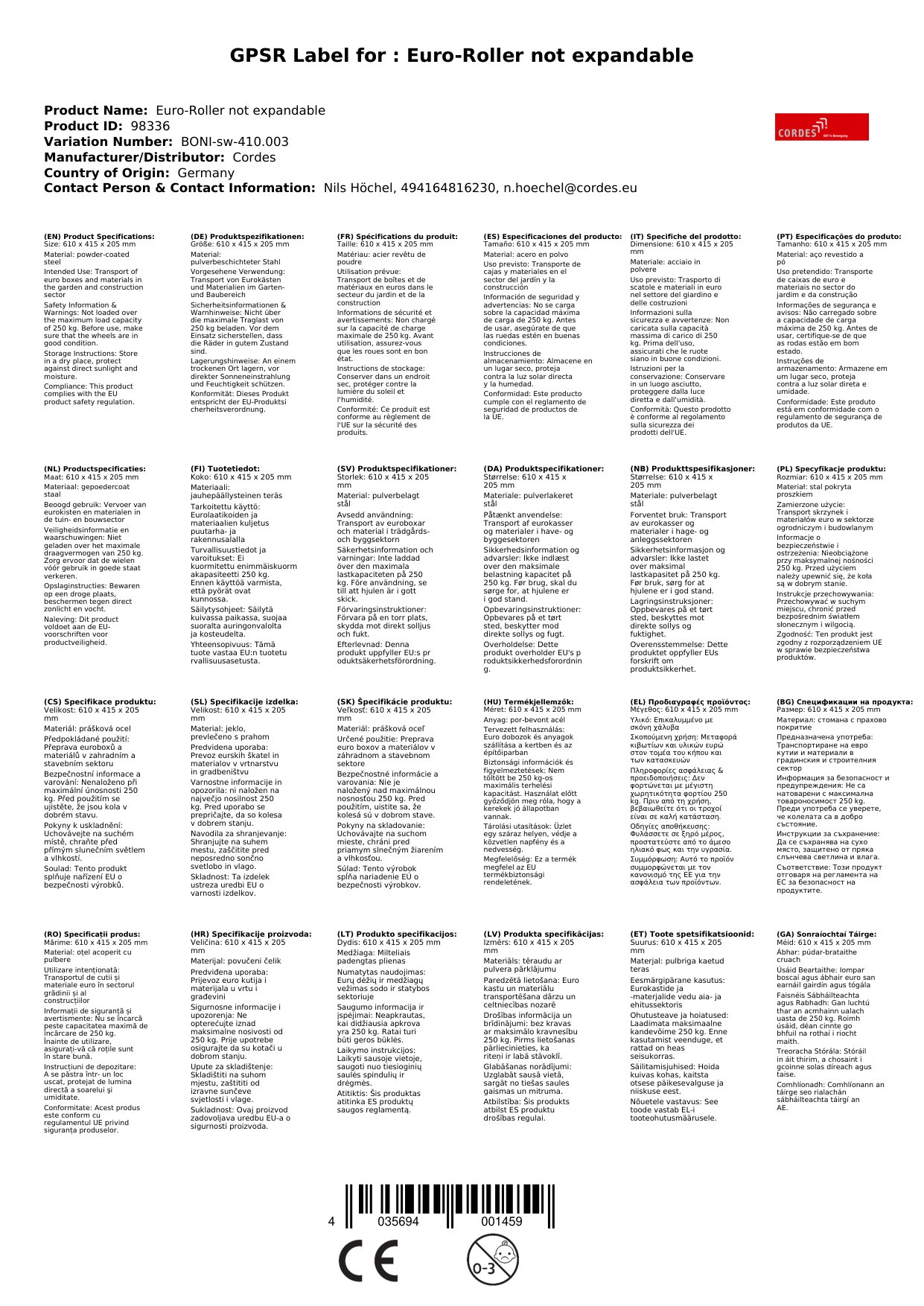 Tá an Euro-Rolla cobhsaí agus déanann sé mo chuid oibre sa stóras i bhfad níos éasca. An-mholta!