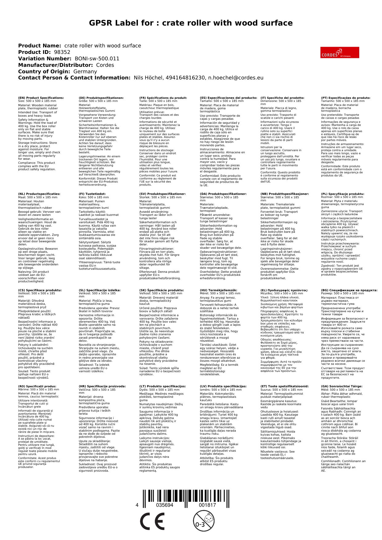| Brand: | Cordes |