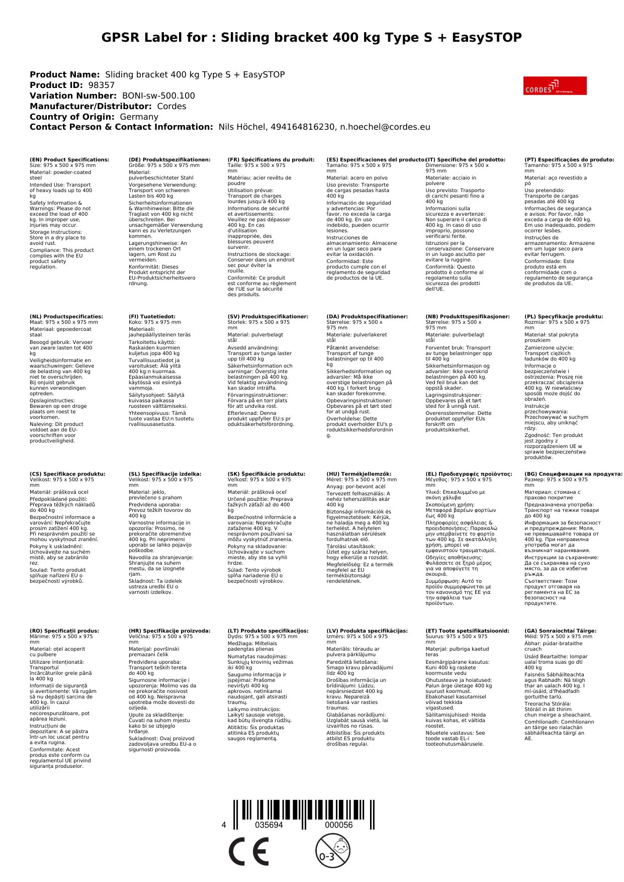 Cuir ceist chun níos mó a fhoghlaim faoin táirgeTralaith Schiebebügel 400 kg Ualaí Cineál S + EasySTOP