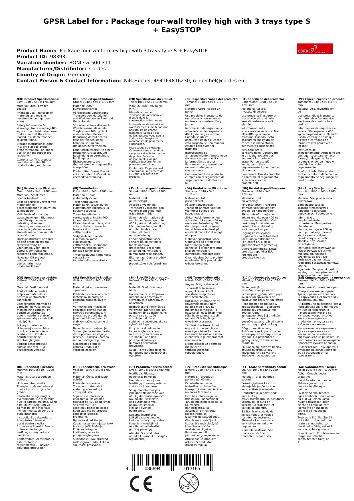 Cuireann ár gcarr iompair ceithre bhalla tógáil láidir ar fáil le haghaidh úsáid laethúil. Le huasualach 400 kg agus trí seilfeanna, is féidir leat do chuid earraí a iompar go sábháilte. Cinntíonn an fheidhm EasySTOP sábháilteacht bhreise. Cén fáth go bhfuil sé seo tábhachtach duit: Faigheann tú carr buan agus sábháilte a fhágann go bhfuil do chuid oibre níos éasca.