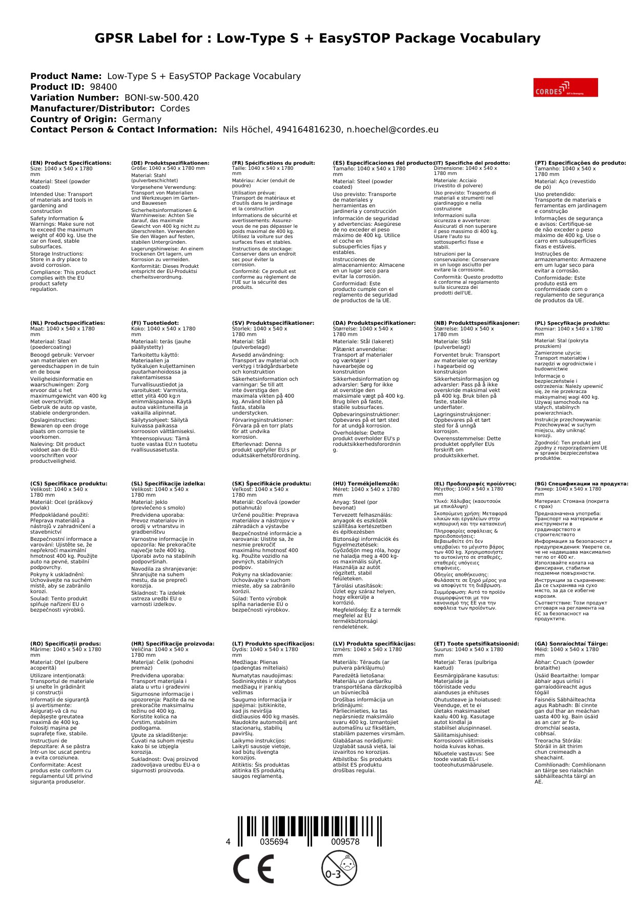 | Brand: | Cordes |
