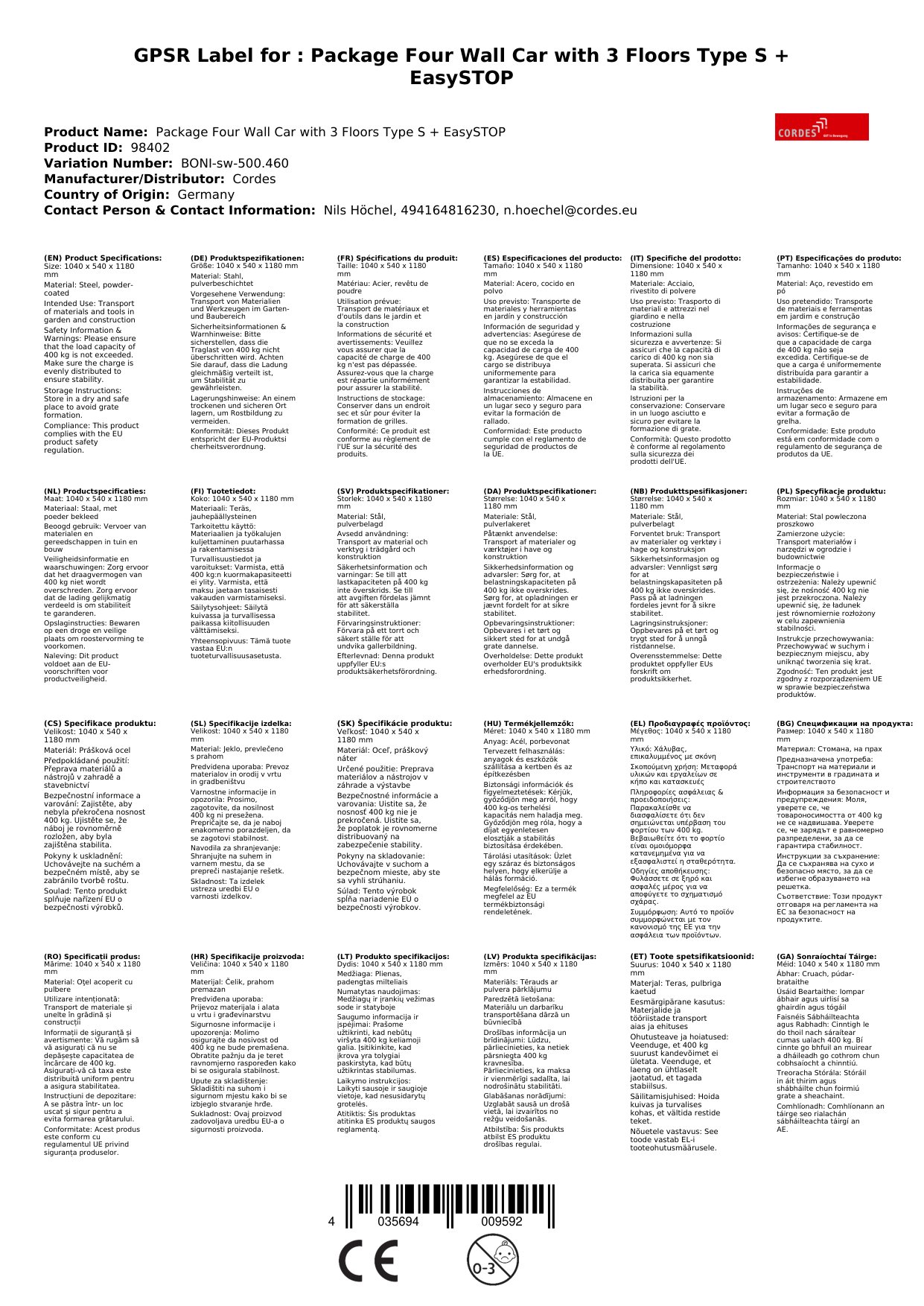 - Tomhais: 1040 x 540 x 1180 mm (B x T x H)
