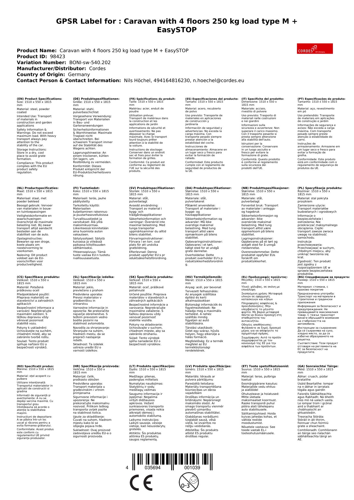 Fáinneán le 4 thaisceadáin 250 kg Ualach Cineál M + EasySTOP
