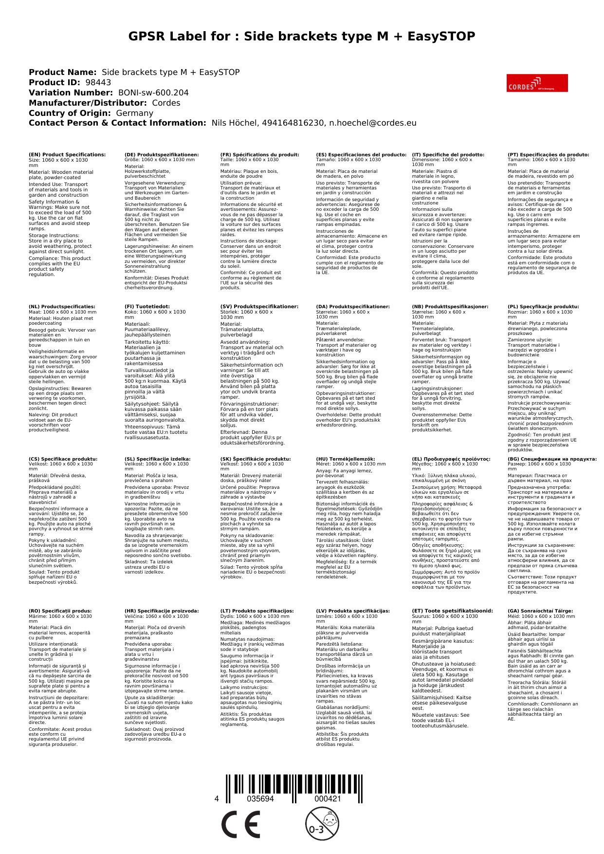 Cairt Taobh-Bharra Cineál M le EasySTOP, 500kg