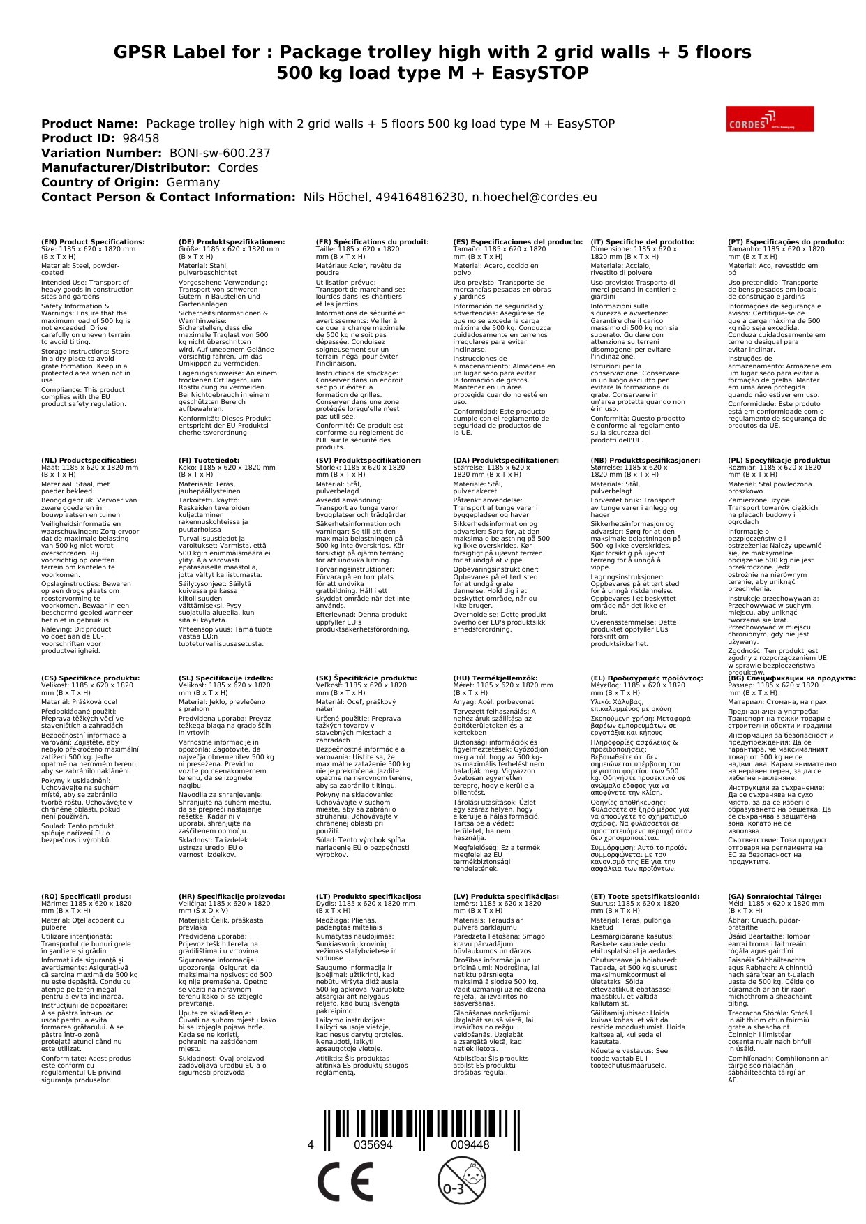 Tá ár dTrucail Cage deartha go sonrach le haghaidh úsáid dhian i stórais agus sa tionscal. Le hacmhainn luchtaithe 500 kg agus dearadh láidir, láimhseálann sé ualaí troma gan stró. Cosnaíonn na ballaí greille d'earraí go hiontaofa, agus cuireann na urláir spás stórála breise ar fáil. Cén fáth go bhfuil sé seo tábhachtach duit: Faigheann tú cúntóir buan agus iontaofa do do thascanna iompair laethúla.
