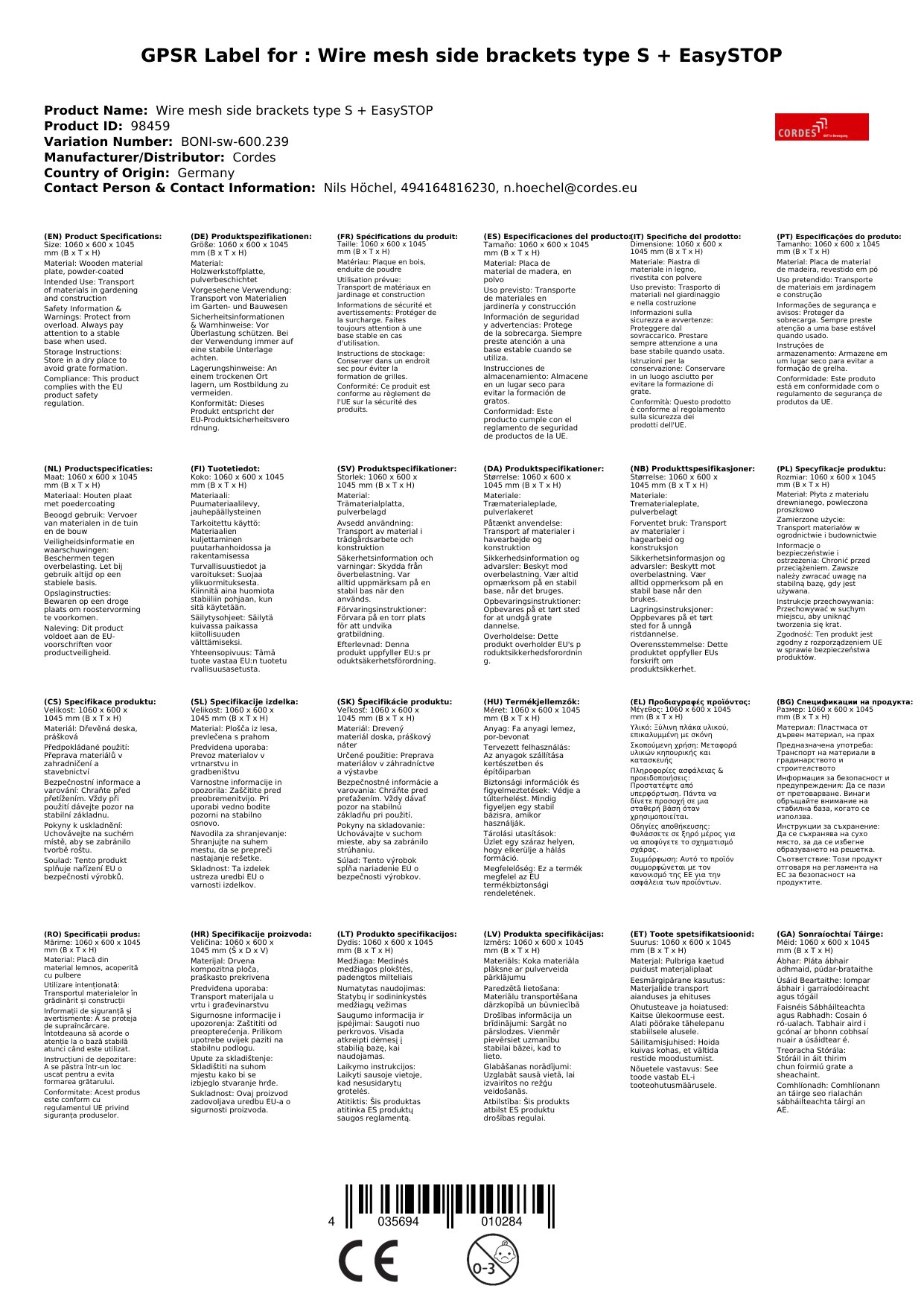 | Brand: | Cordes |