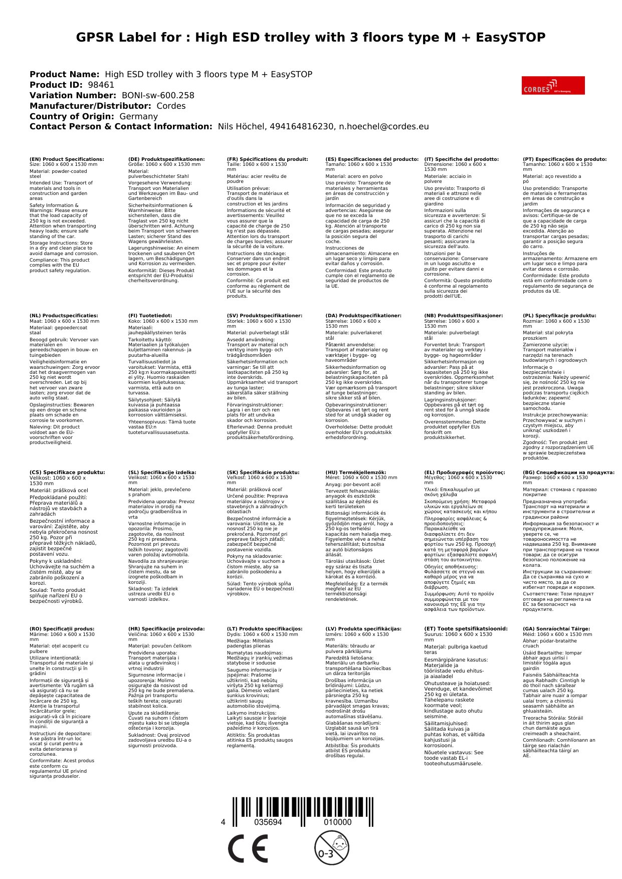 - Toisí: 1060 x 600 x 1530 mm (W x D x H) – Baineann tú leas as go leor spáis do d’uirlisí agus d’ábhair.