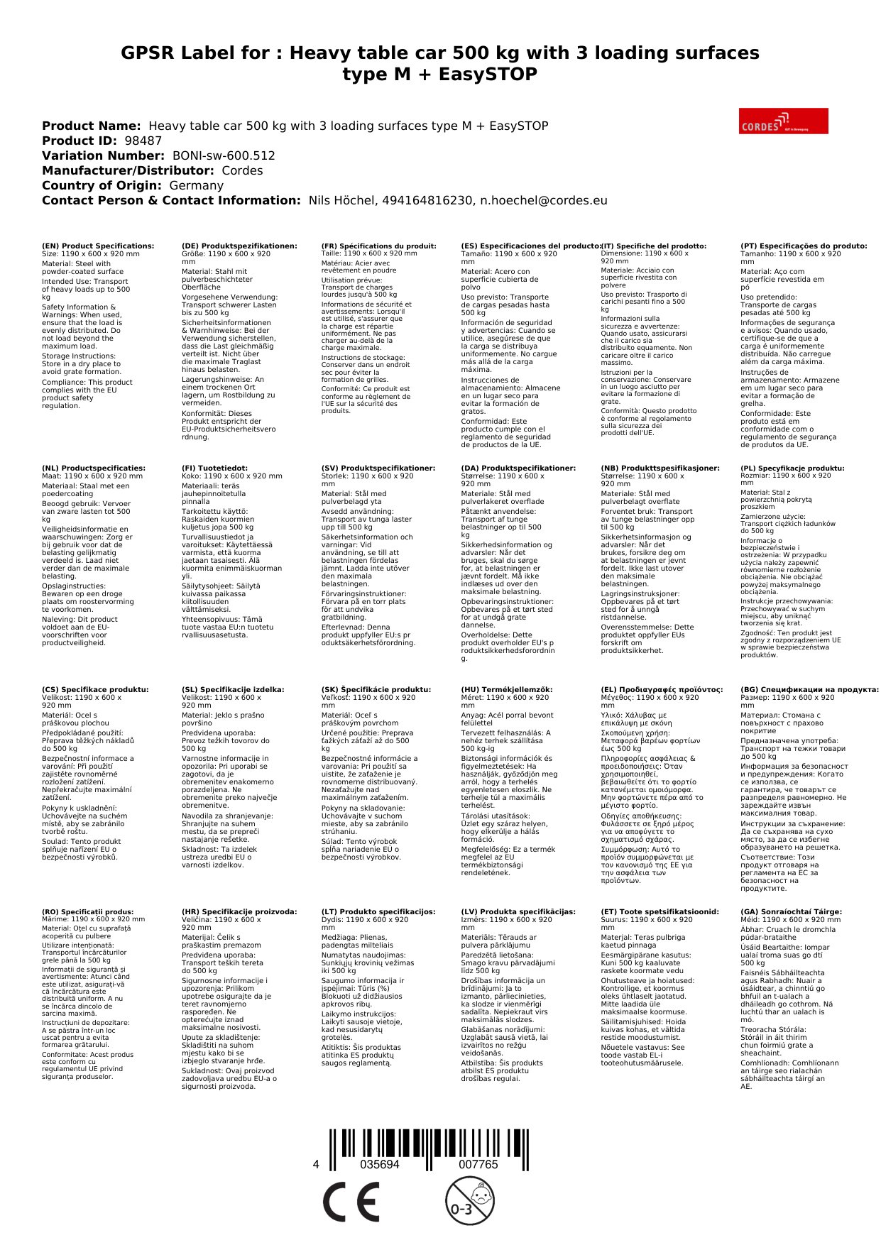 | Brand: | Cordes |
