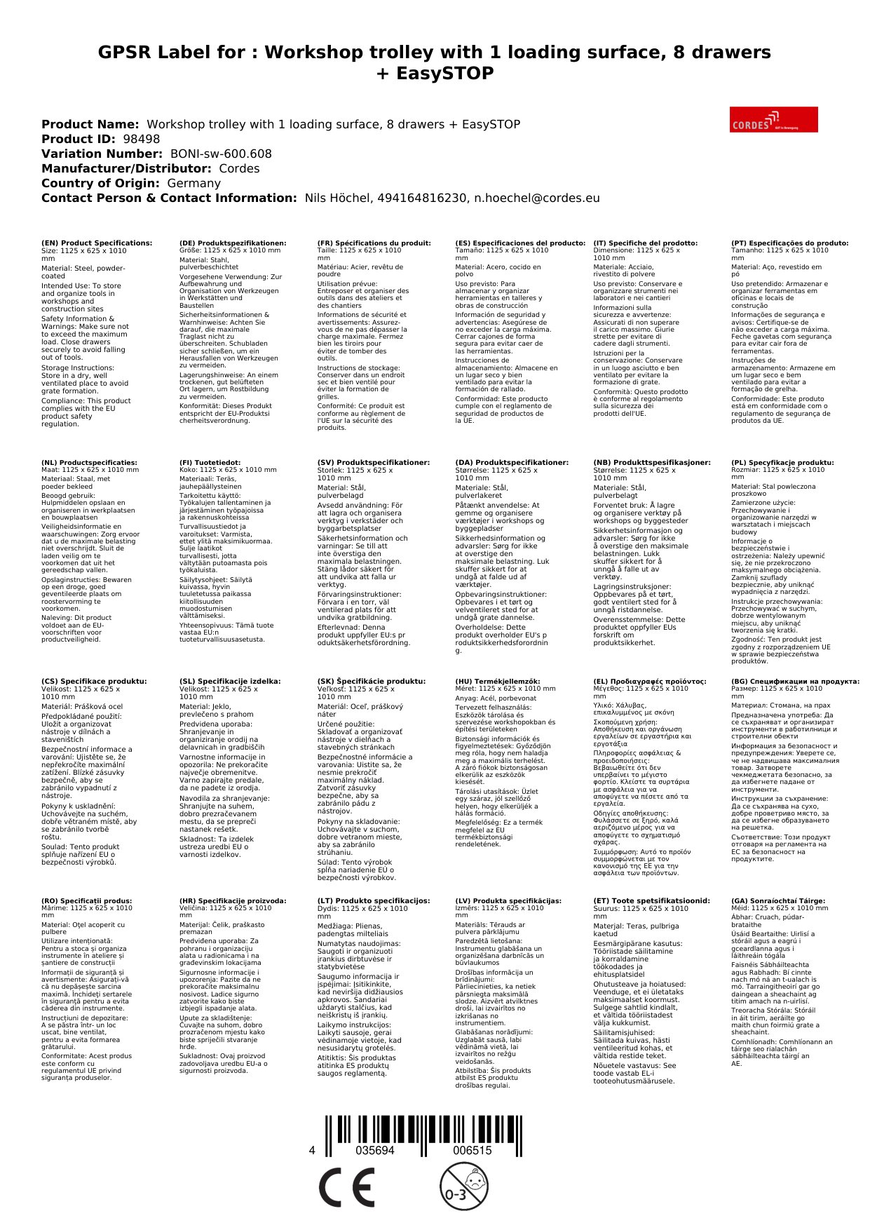 Cuireann ár gcarr siopa ceardlainne go leor spáis stórála ar fáil duit, chomh maith le cumas ualaigh ard agus soghluaisteacht. Cosnaíonn an dromchla atá brataithe le púdar i gcoinne scratches agus damáiste. Leis na 8 tarraiceán agus an dromchla luchtaithe mór, tá gach rud agat ar láimh.