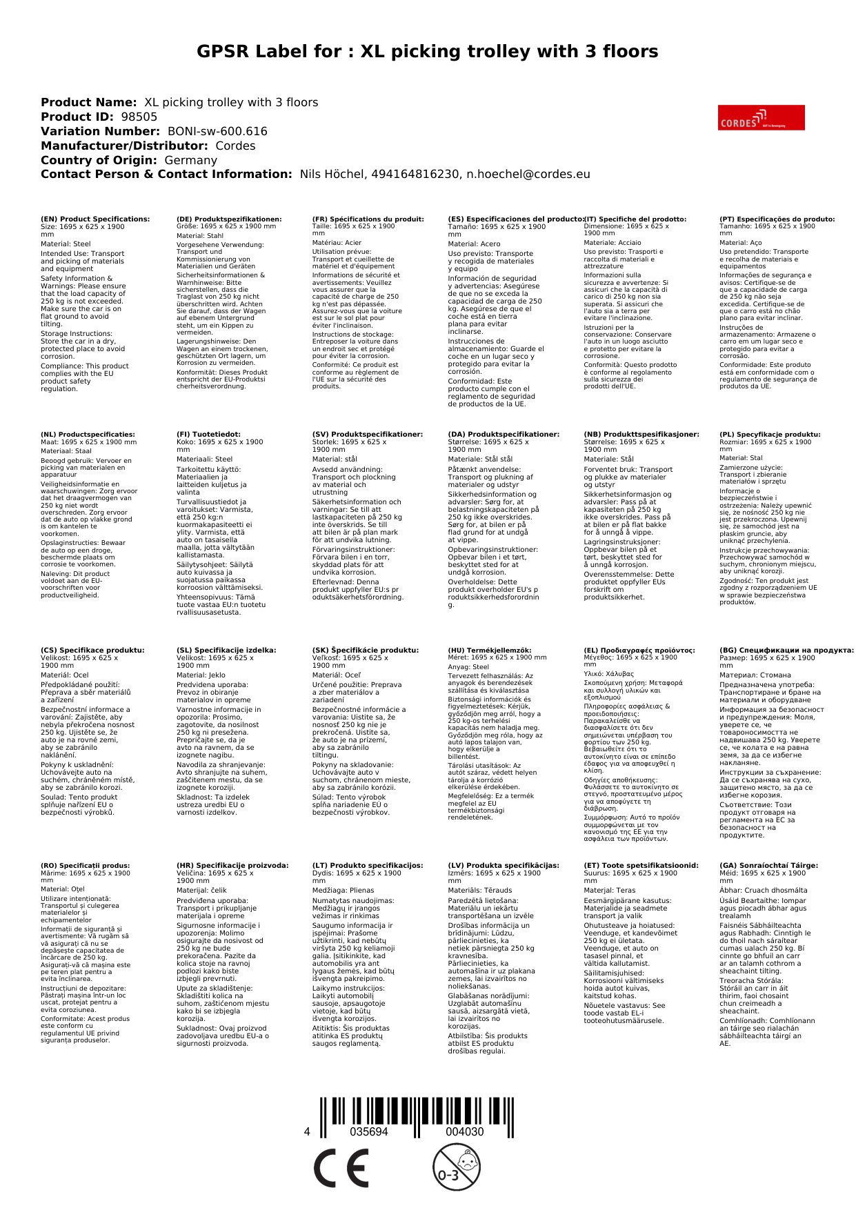 An bhfuil tú ag lorg réiteach láidir agus iontaofa chun earraí a iompar i do stóras nó i do cheardlann? Cuireann an Carraeir Piocála XL le 3 seilfeanna an meascán foirfe ar fáil de chobhsaíocht, acmhainn agus solúbthacht. Le cumas ualaigh de 250 kg agus dromchla luchtaithe flaithiúil, tá an carraeir seo oiriúnach le haghaidh úsáid laethúil. Déan do shreafaí oibre a shimpliú agus feabhas a chur ar éifeachtúlacht leis an gcarraeir piocála ardchaighdeáin seo.