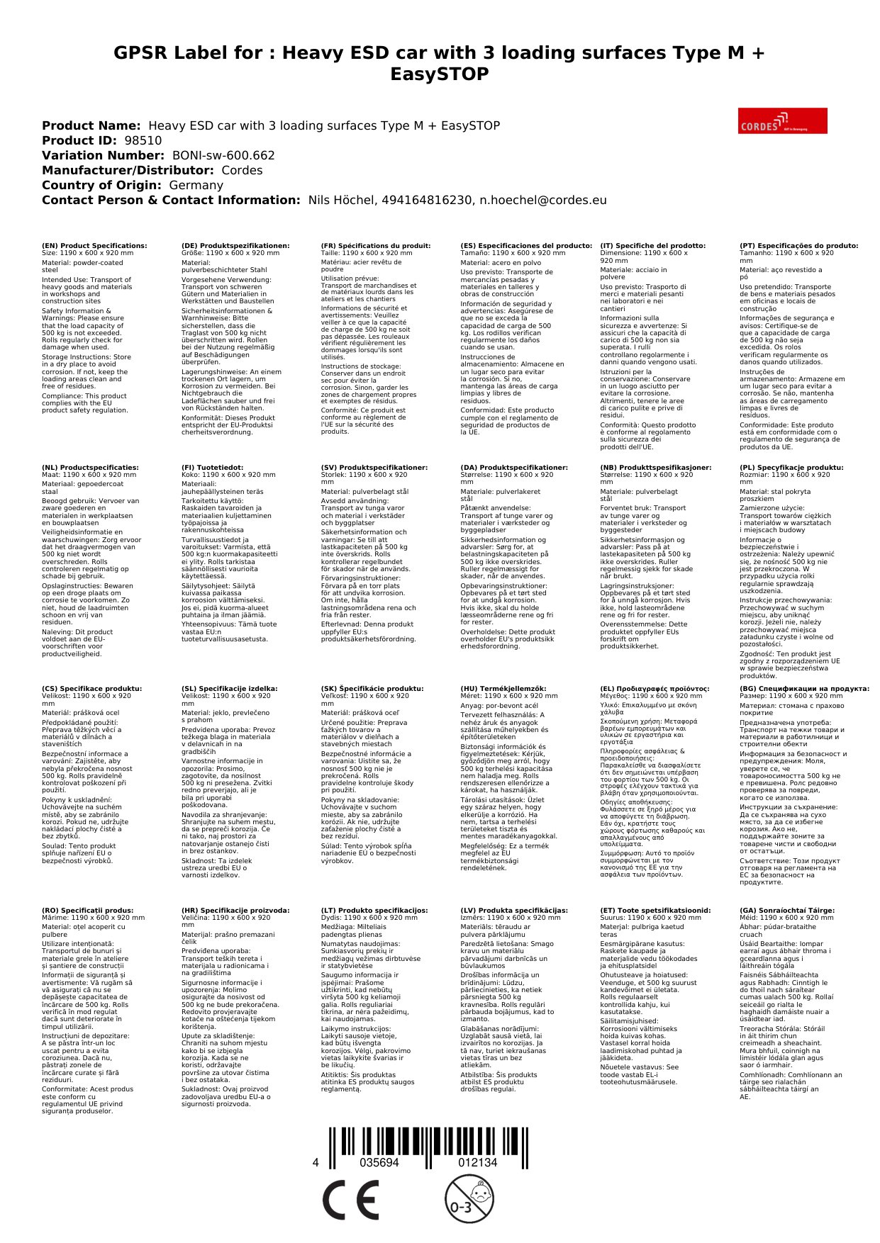 | Brand: | Cordes |