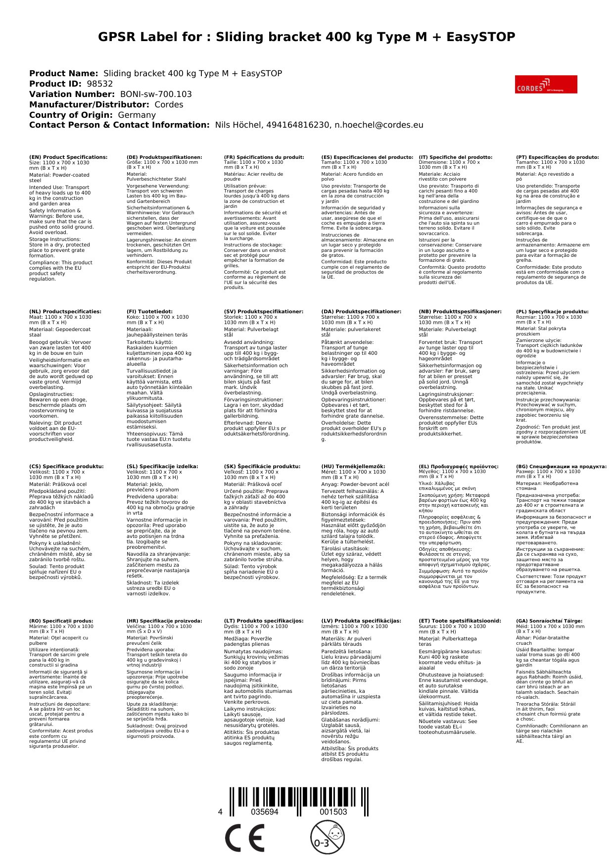 | Brand: | Cordes |