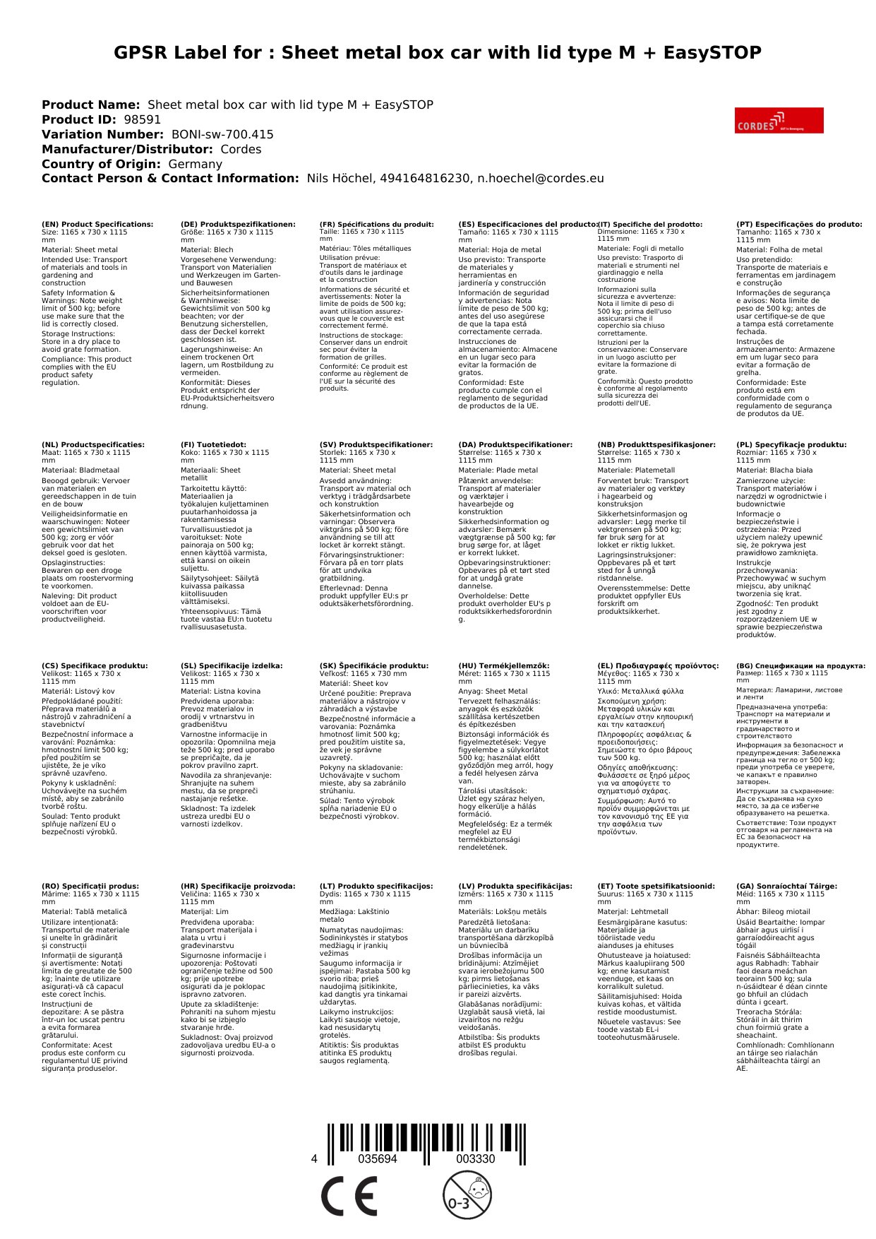 - Toisí: 1165 x 730 x 1115 mm (B x T x H)