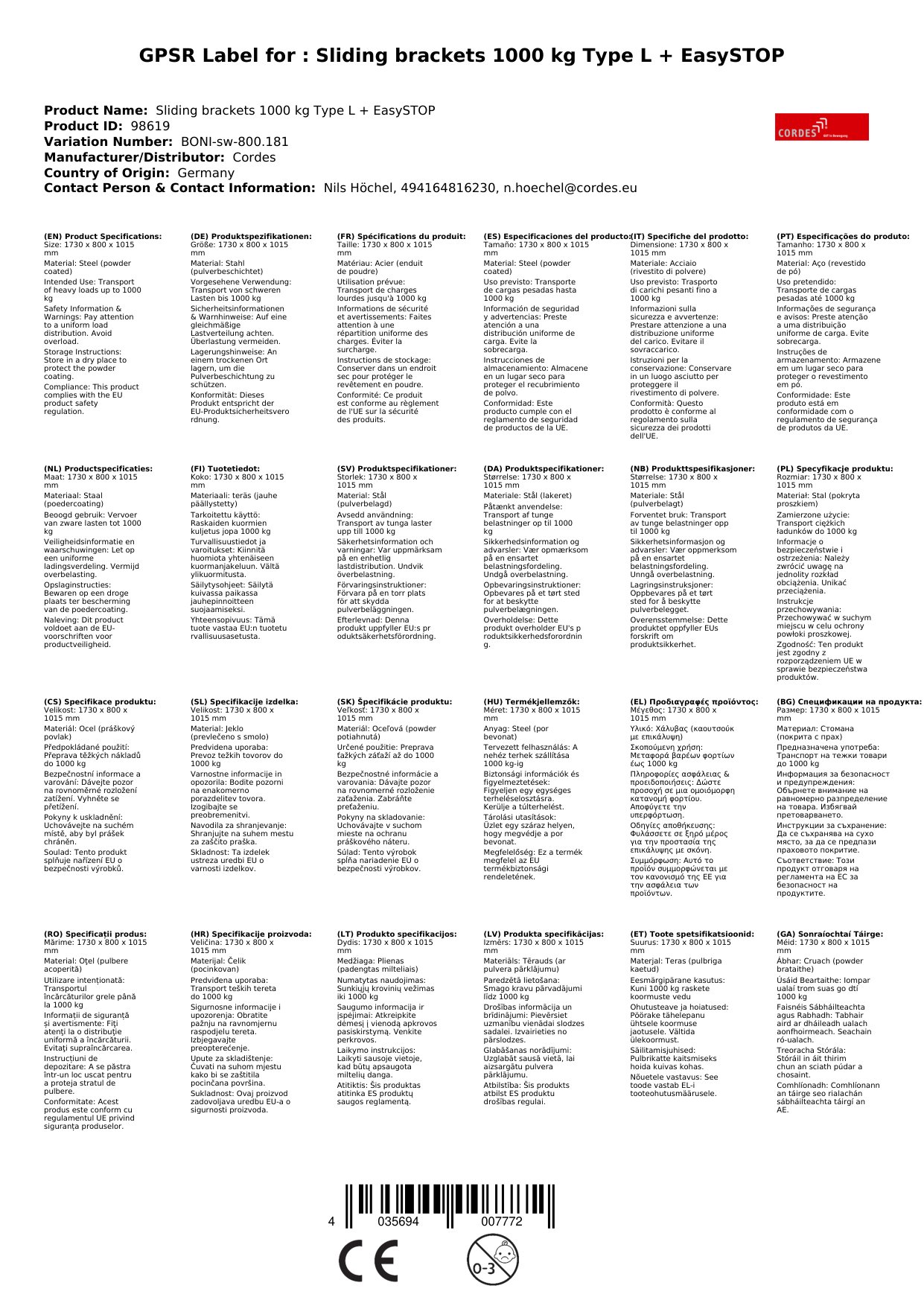 | Brand: | Cordes |