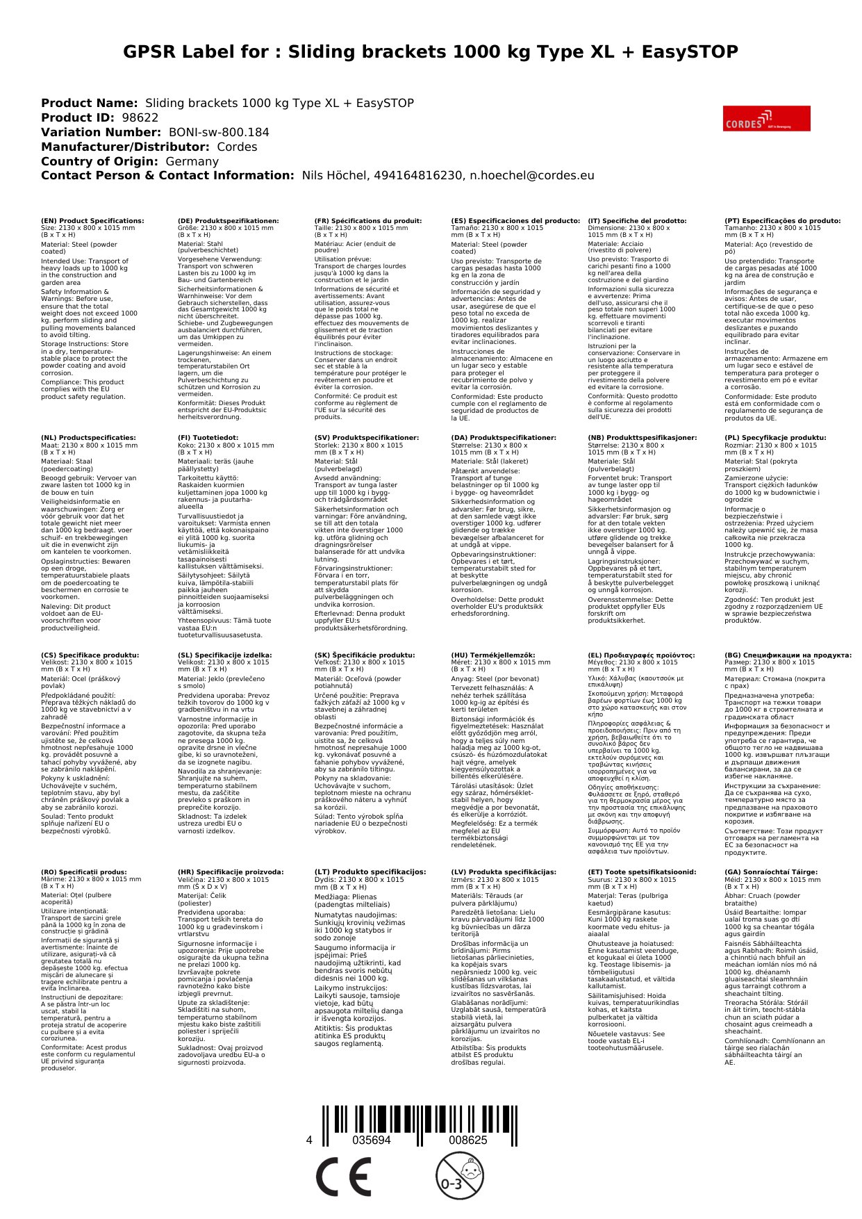 | Brand: | Cordes |