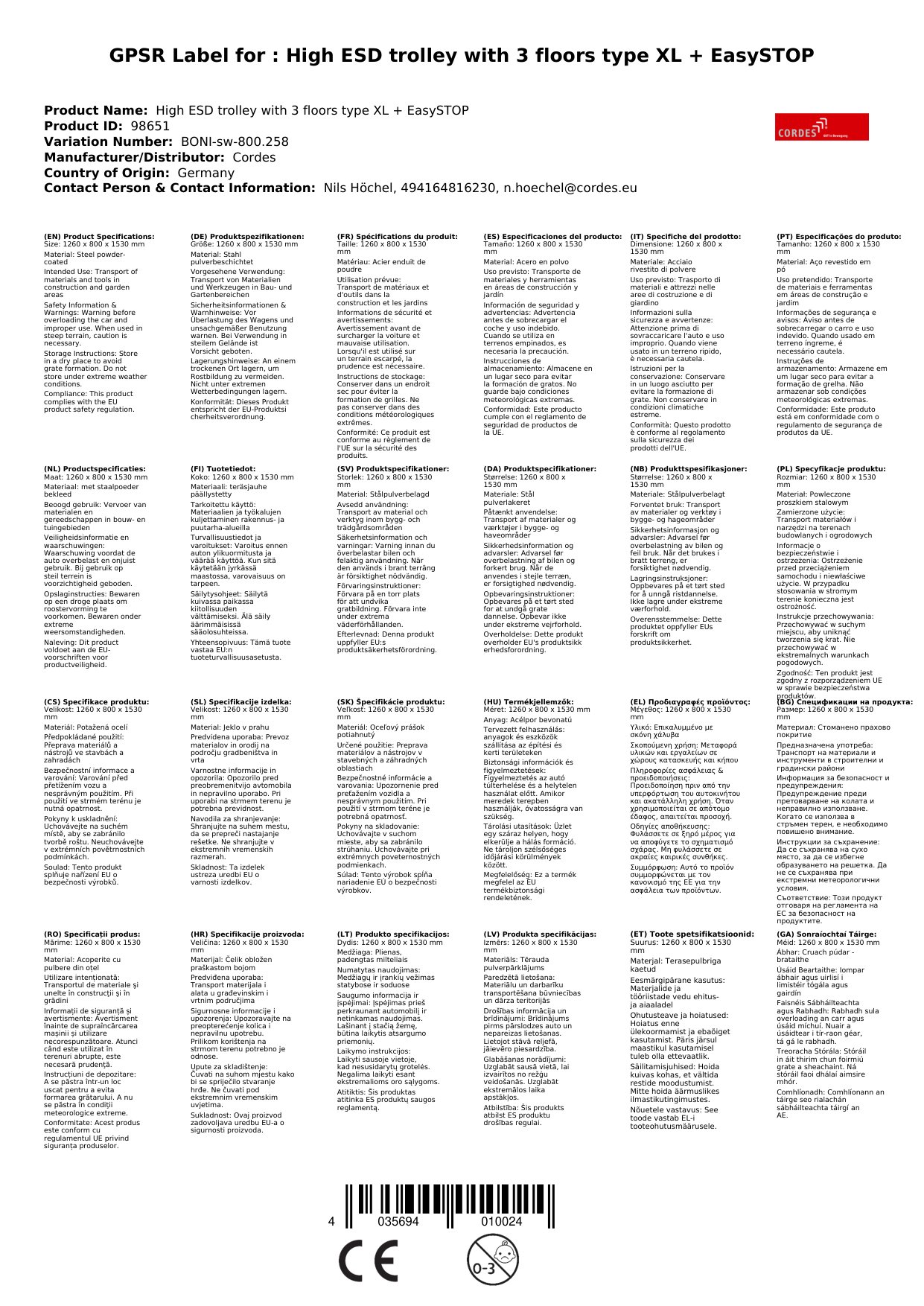 Úsáidim an Carráiste Il-Leibhéil ESD do mo shaotharlann agus táim thar a bheith sásta. Tá siad thar a bheith cobhsaí agus coinníonn siad gach rud i bhfeidhm fiú i ngaoth. Tá cóimeáil an-éasca. - Hans-Peter K.