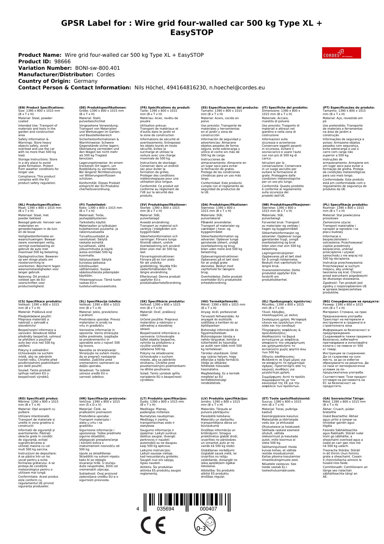 | Brand: | Cordes |