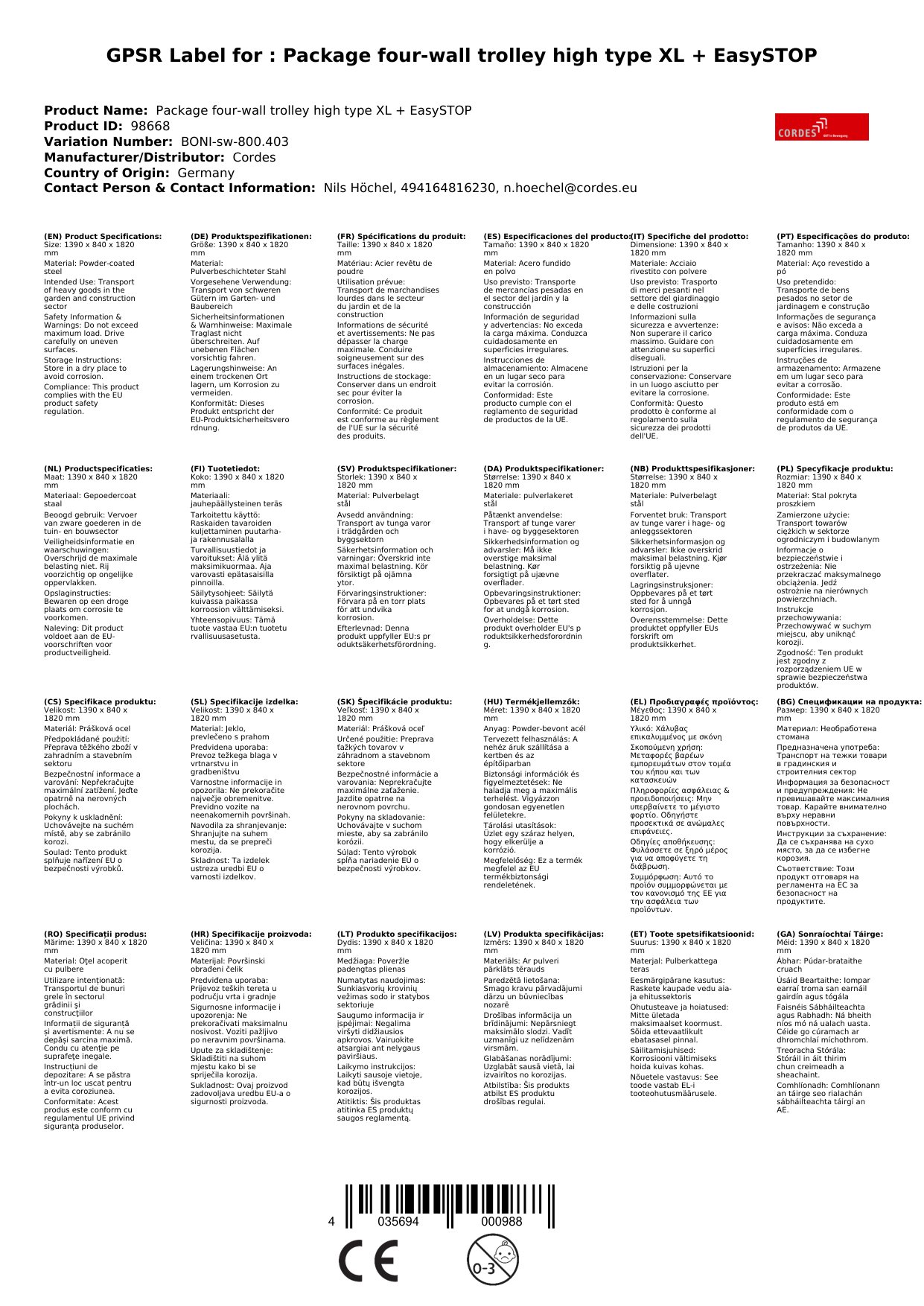 An bhfuil tú ag lorg cúntóir iompair iontaofa chun ualaí troma a bhogadh? Is é ár gcarr iompair ceithre bhalla Cineál XL le EasySTOP an réiteach idéalach d'iompar inmheánach. Tairgeann sé cumas ualaigh ard de 500 kg agus, a bhuíochas dá thógáil láidir, tá sé buan agus frithsheasmhach. Bain tairbhe as iompar éifeachtach agus sábháilte d'earraí.
