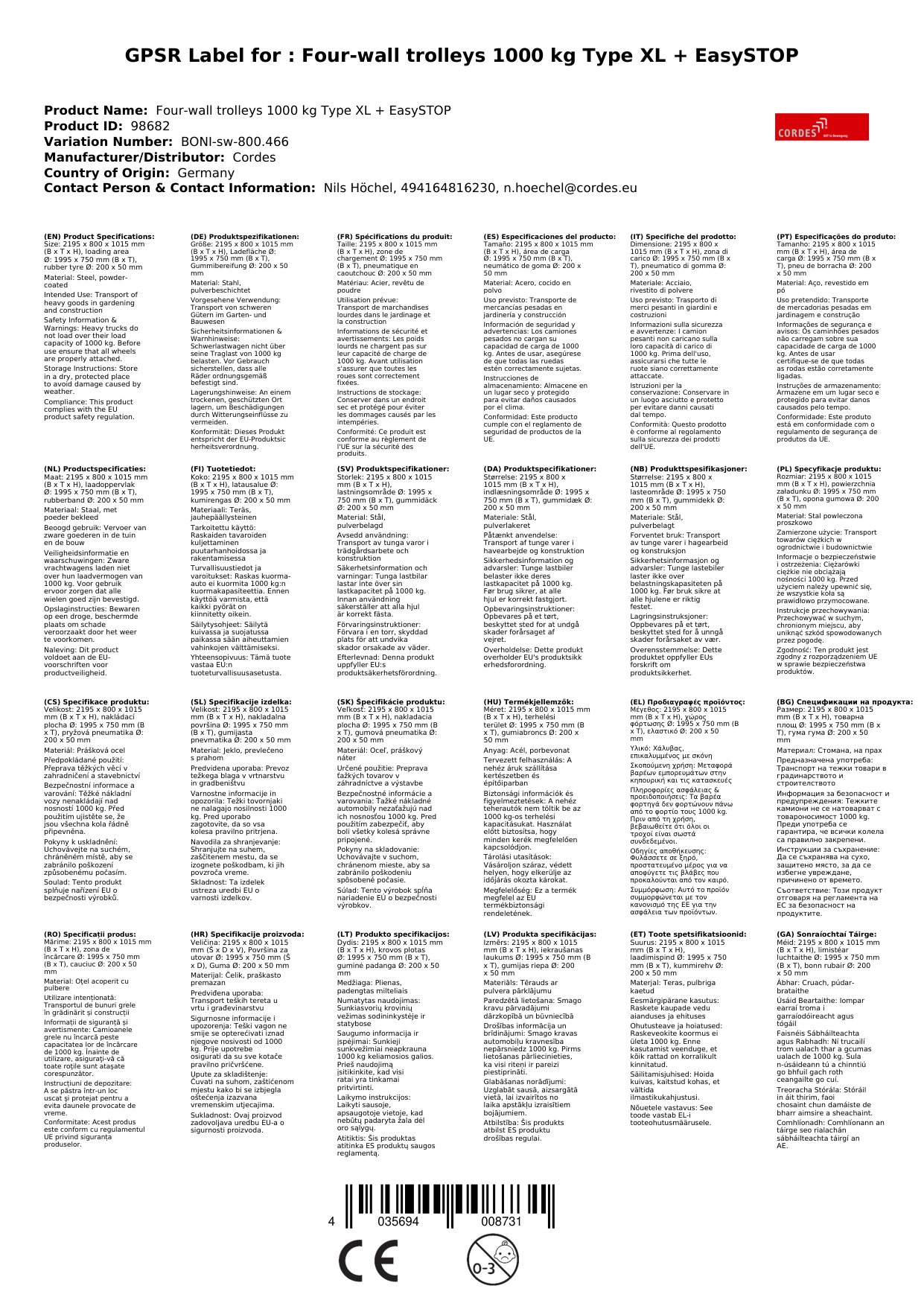 Cuir ceist chun níos mó a fhoghlaim faoin táirgeCarrcharranna ceithre-bhalla 1000 kg Cineál XL + EasySTOP