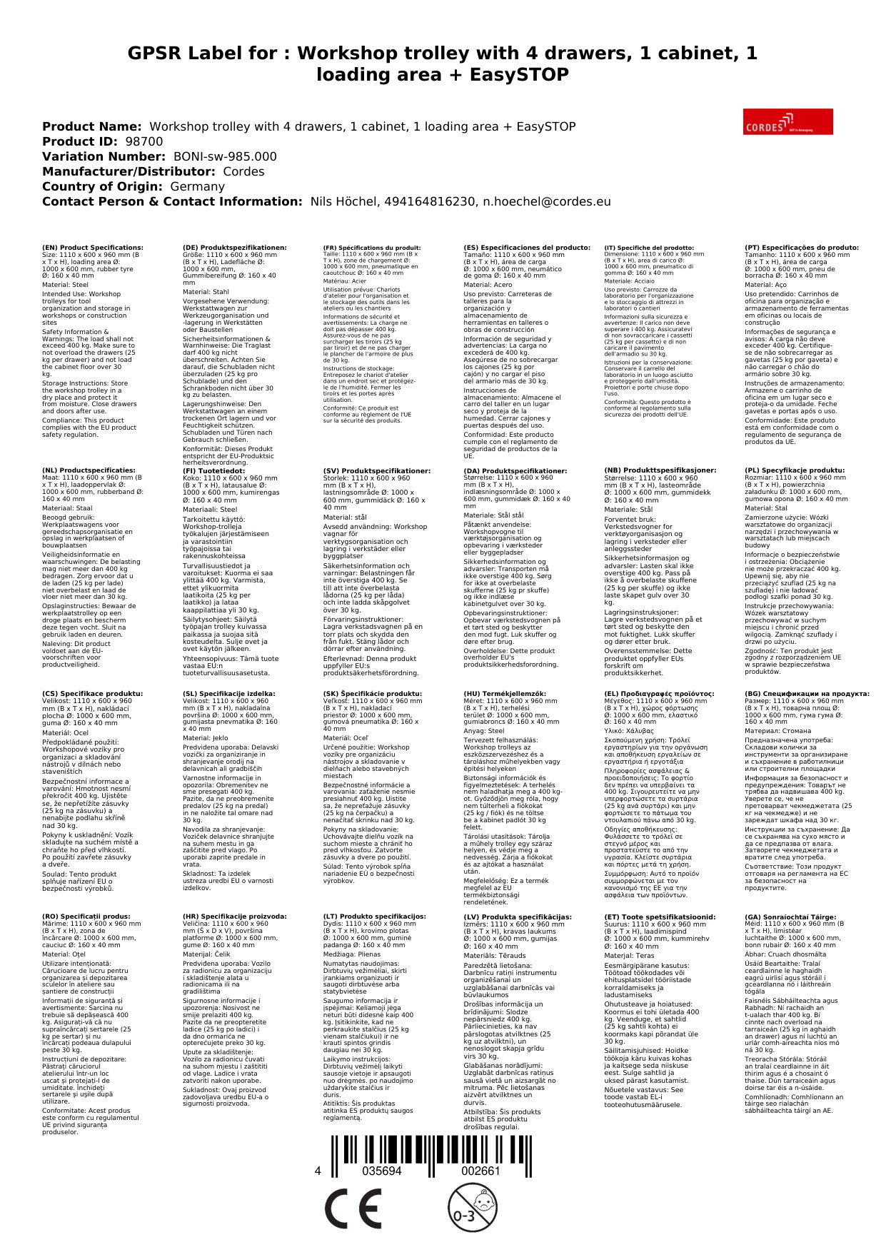 Cuireann ár gcarr uirlisí réiteach láidir ar fáil duit chun d'uirlisí a eagrú. Le huasluach 400 kg, 4 tarraiceáin, comh-aireachta agus dromchla luchtaithe praiticiúil, tá sé oiriúnach le húsáid go laethúil. Cinntíonn na boinn rubair iompar ciúin agus compordach. Cén fáth go bhfuil sé seo tábhachtach duit: Faigheann tú carr uirlisí buan agus iontaofa a fhágann go bhfuil an obair níos éasca duit.